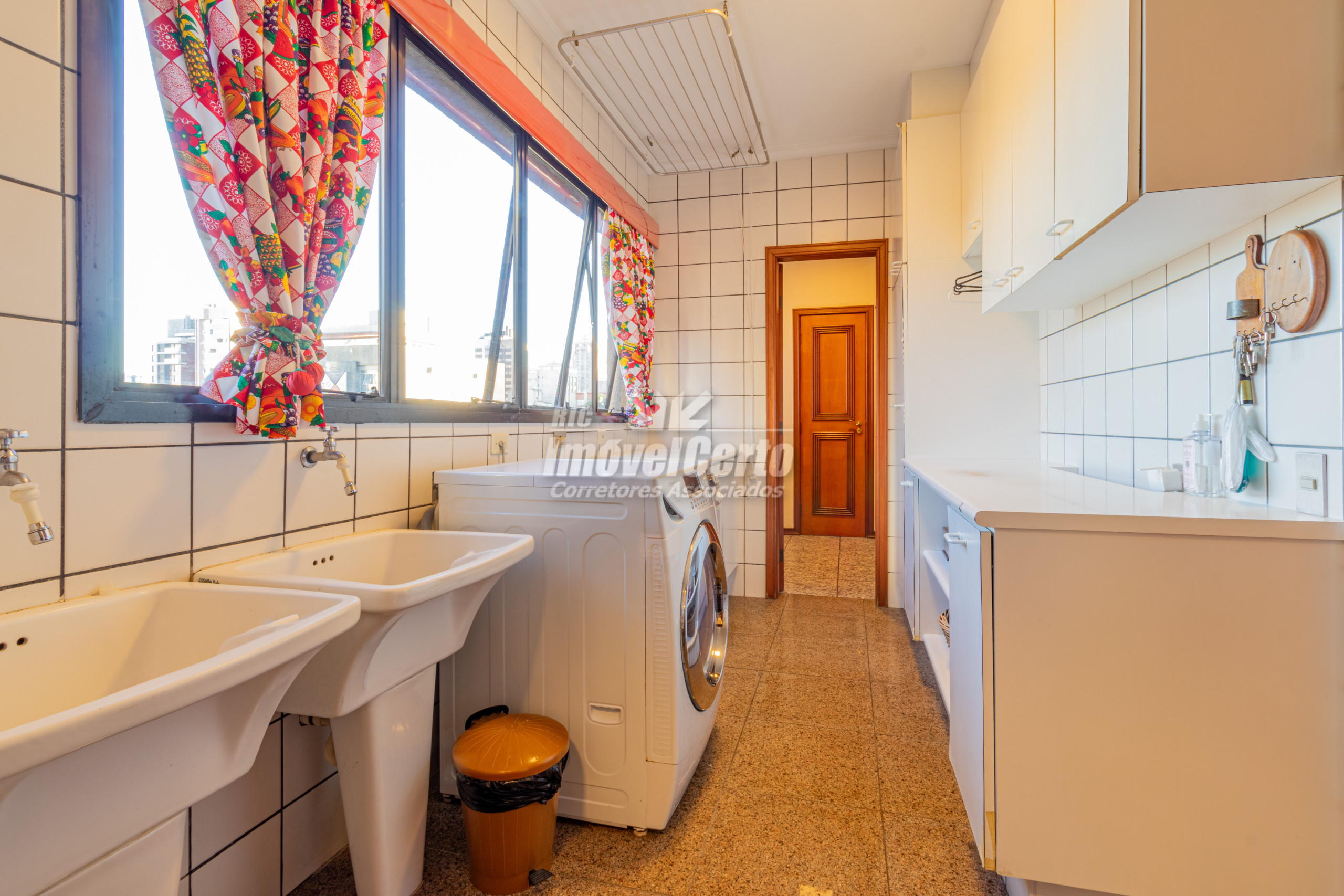 O apartamento é face norte, recebendo o sol da manhã na cozinha e área de serviço, e sol da tarde nas salas e dormitórios.