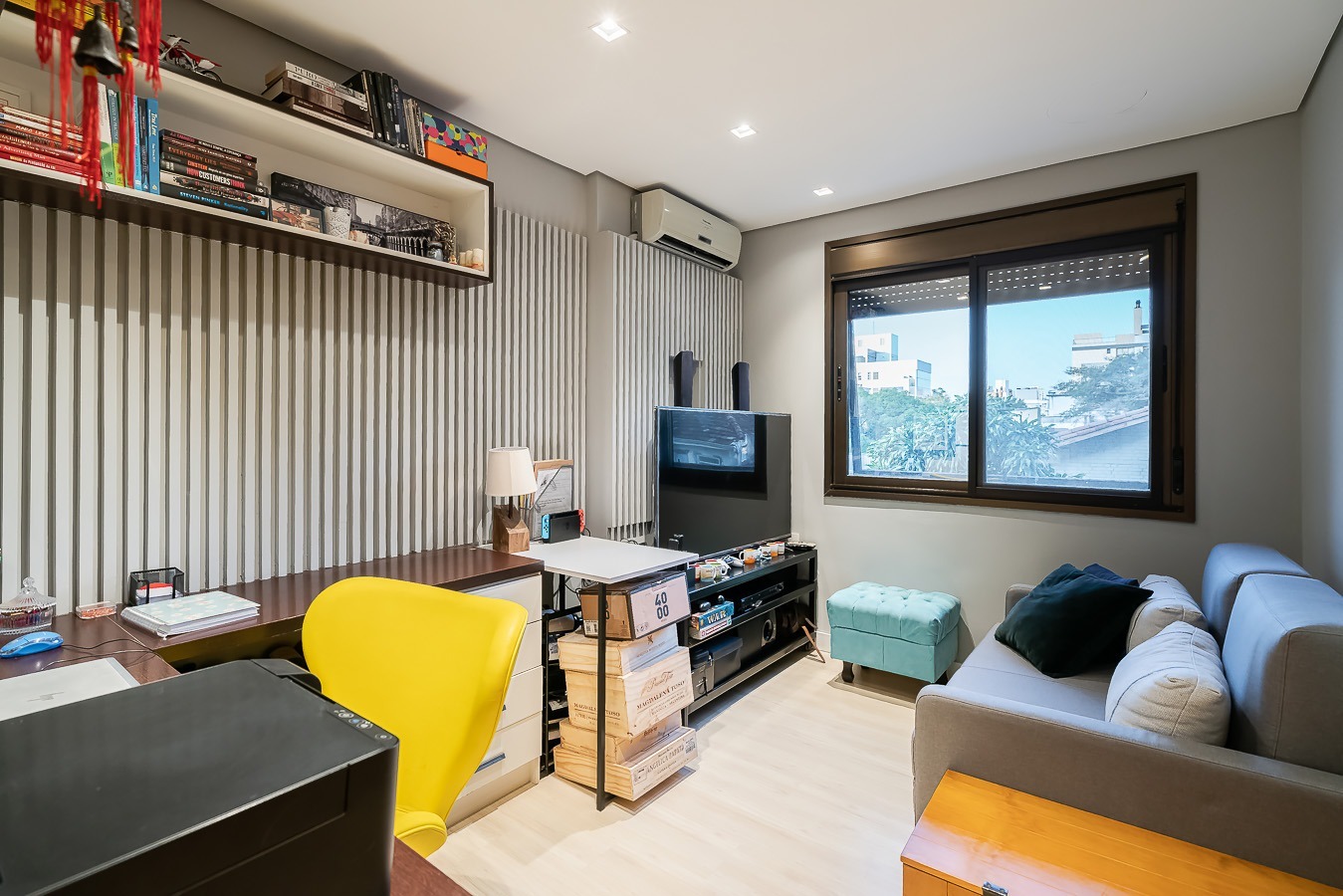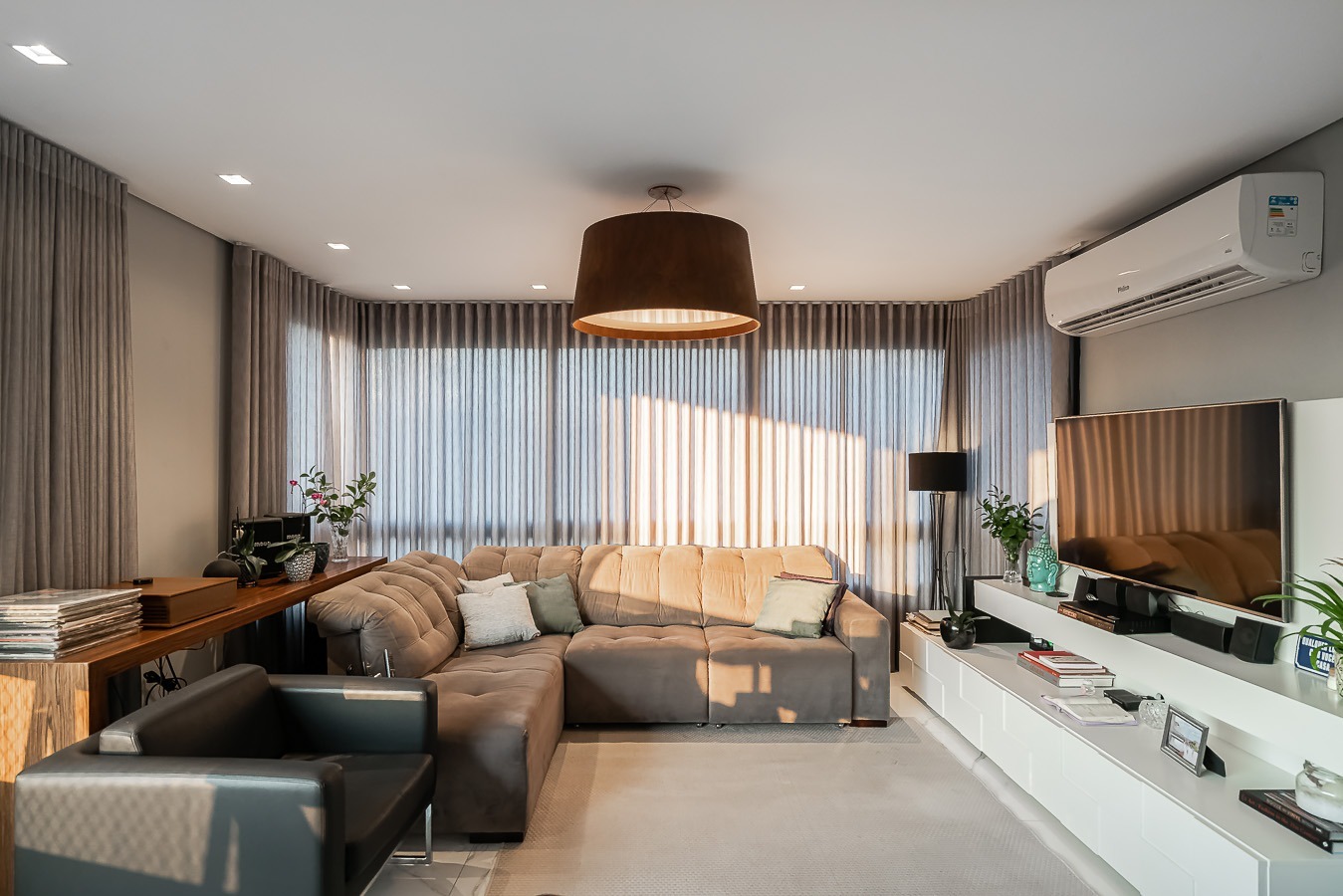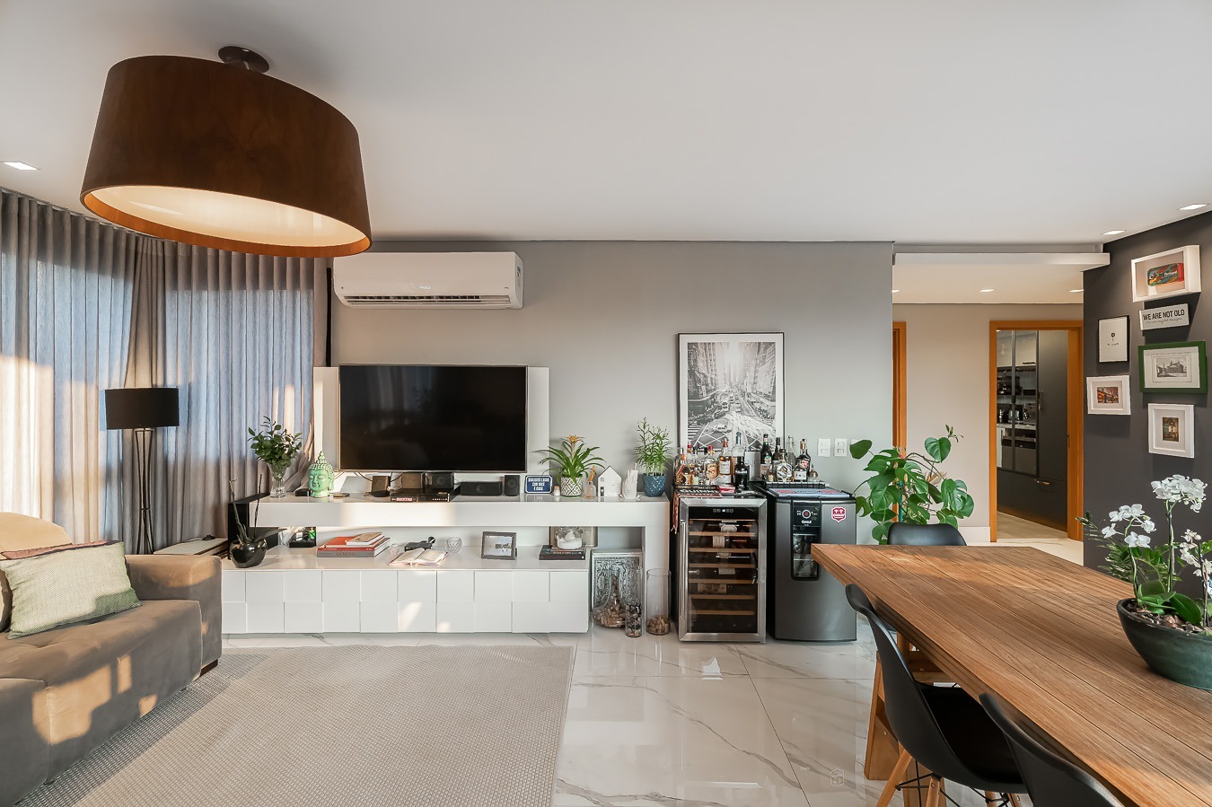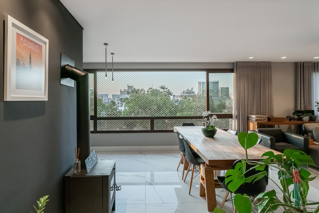 Com vista deslumbrante para o Parcão, living 2 ambientes bem definido, com marcenaria sob medida, sala de estar com esquadrias de vidro duplo com isolamento térmico-acústico, cozinha americana, área de serviço separada.