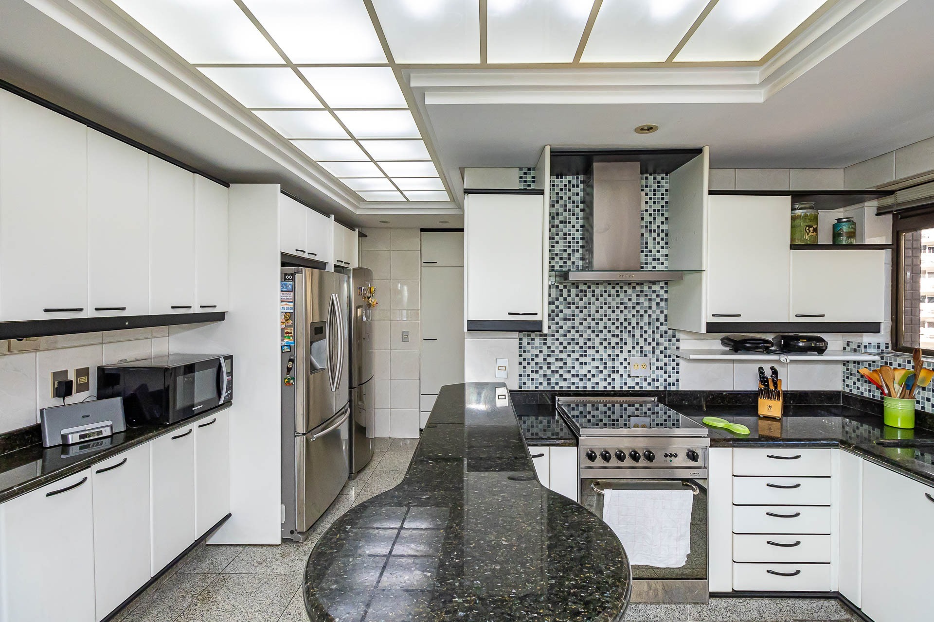 São 4 suítes, living 3 ambientes com lareira, ampla sacada com churrasqueira, lavabo, copa-coz...