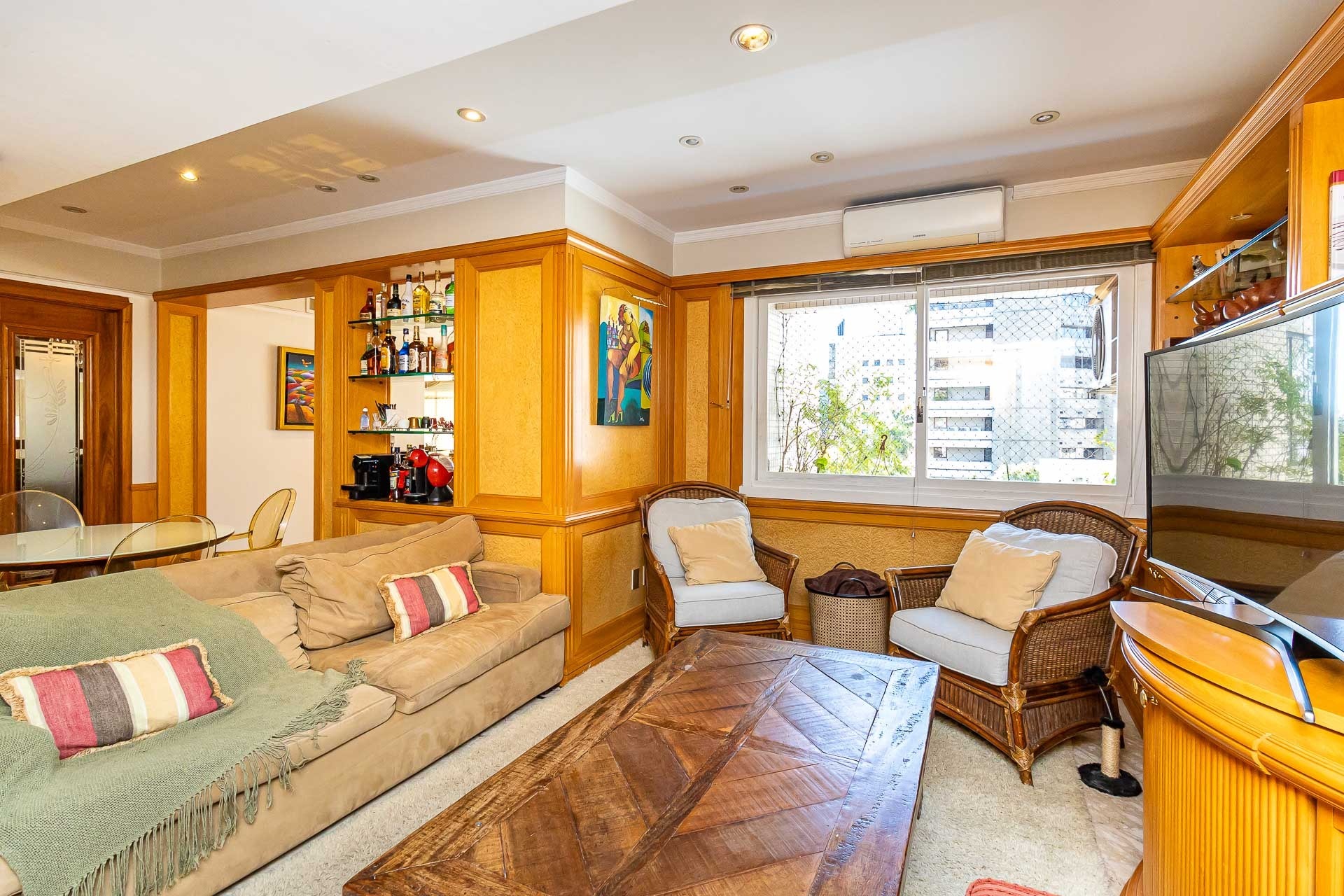 Este espaçoso apartamento de 173m² oferece 3 dormitórios, sendo 1 suíte master, além de 1 vaga de garagem. Localizado em um dos bairros mais nobres de Porto Alegre, Moinhos de Vento, o imóvel possui um living em "L" que integra sala de estar e jantar, lavabo, copa-cozinha, além de dormitório e banheiro de serviço.