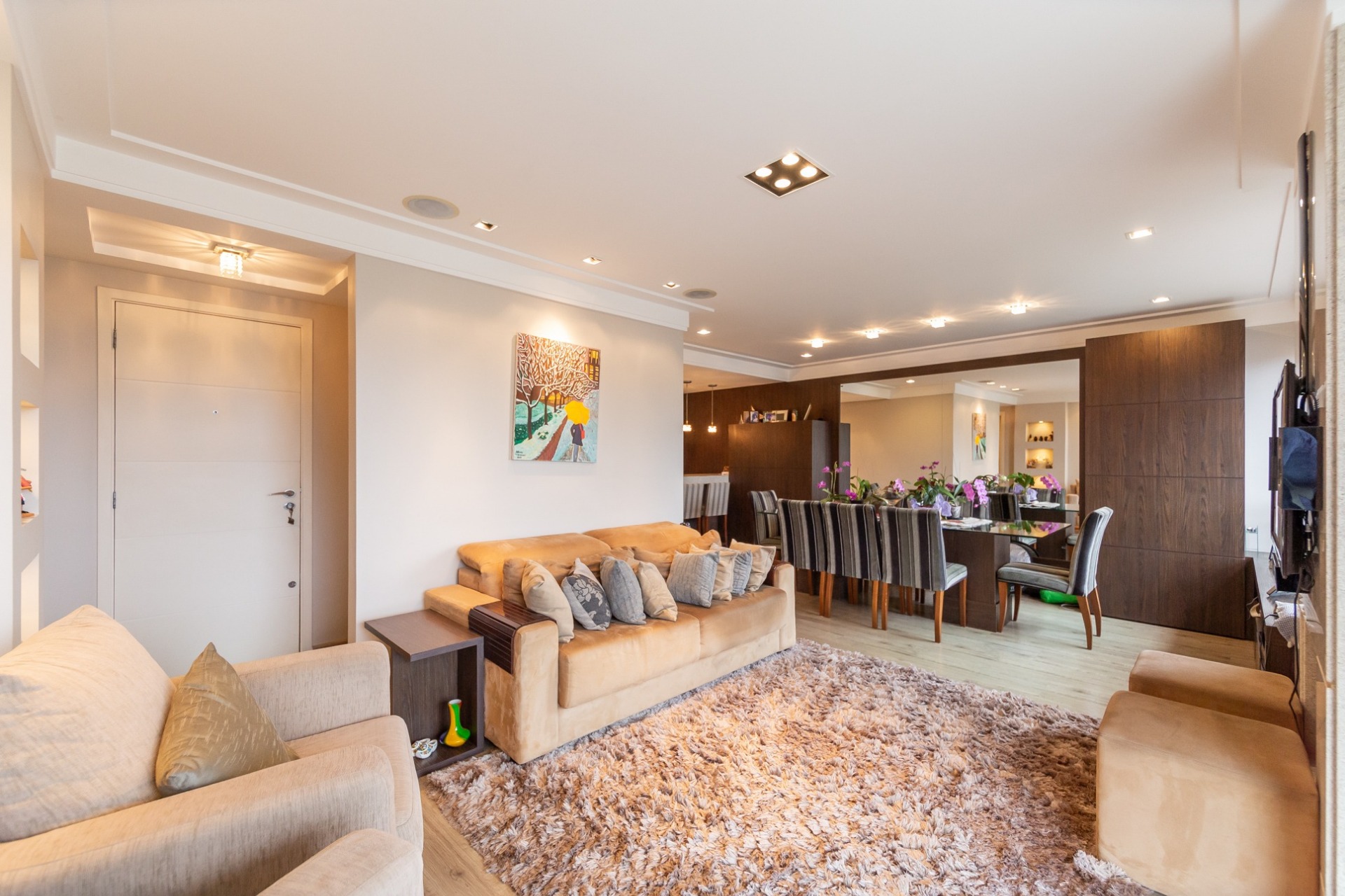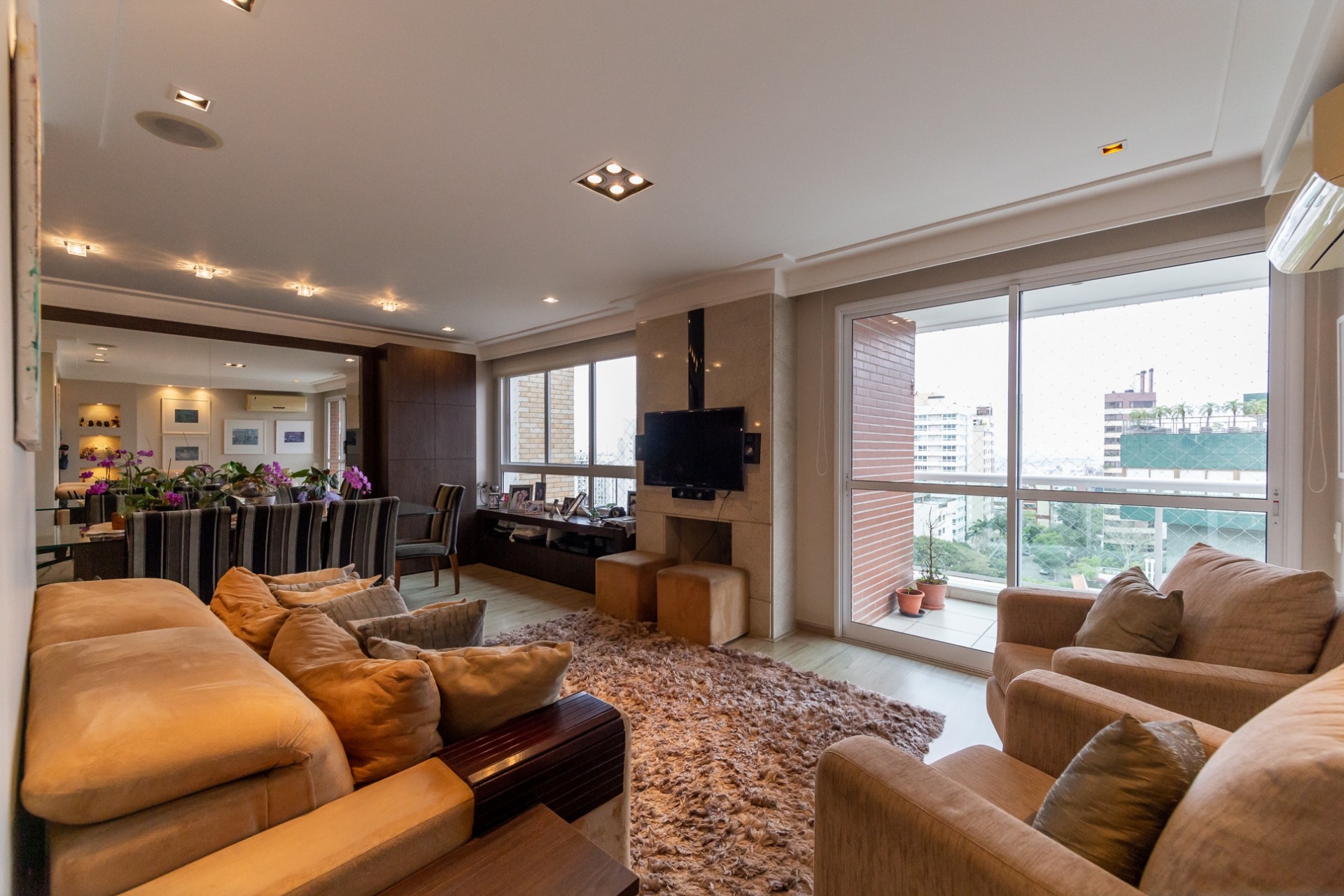 Sofisticado living para 03 ambientes , espaço lareira , espaço churrasqueira , lavabo , cozinha americana. 03 vagas individuais 2 depósitos.