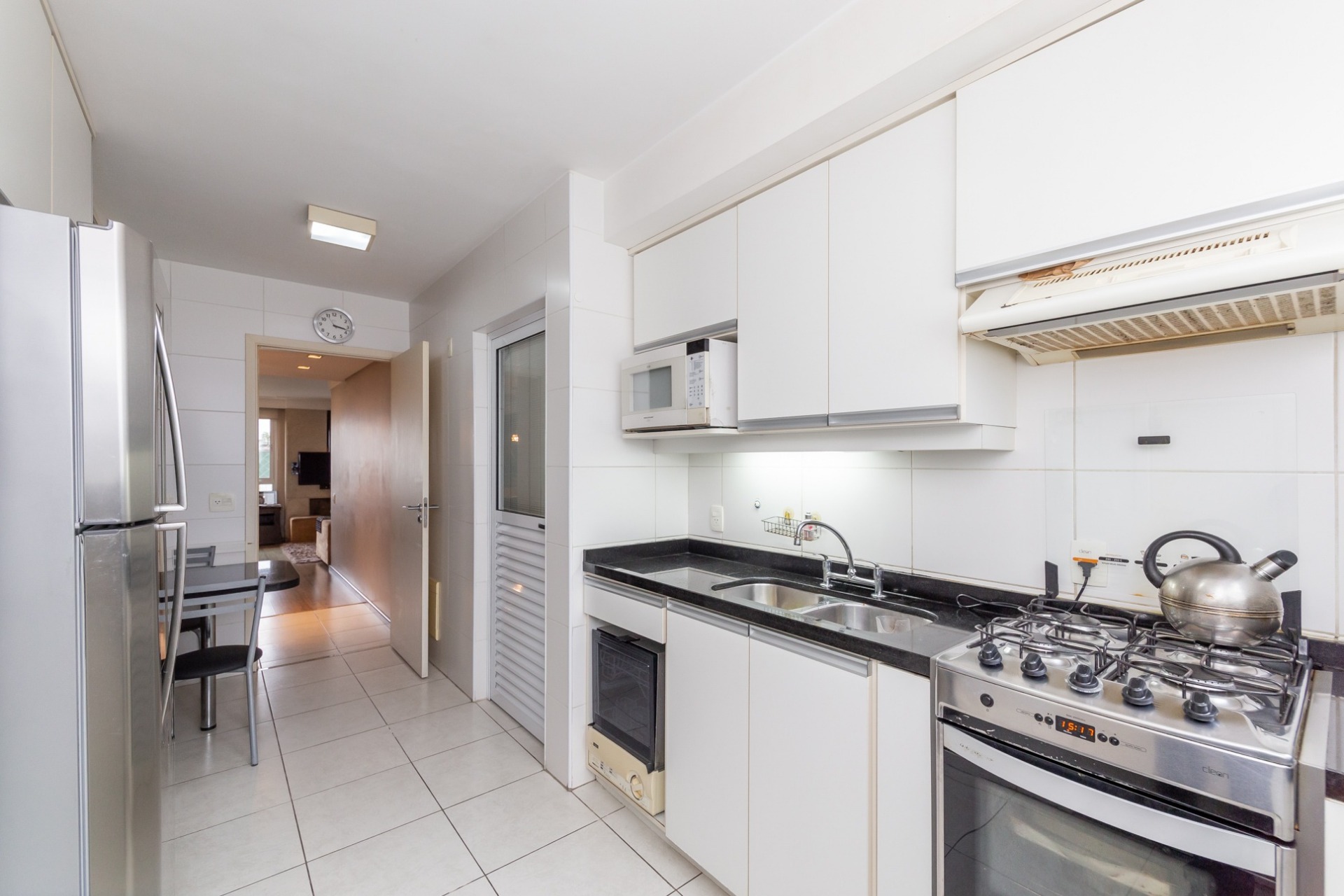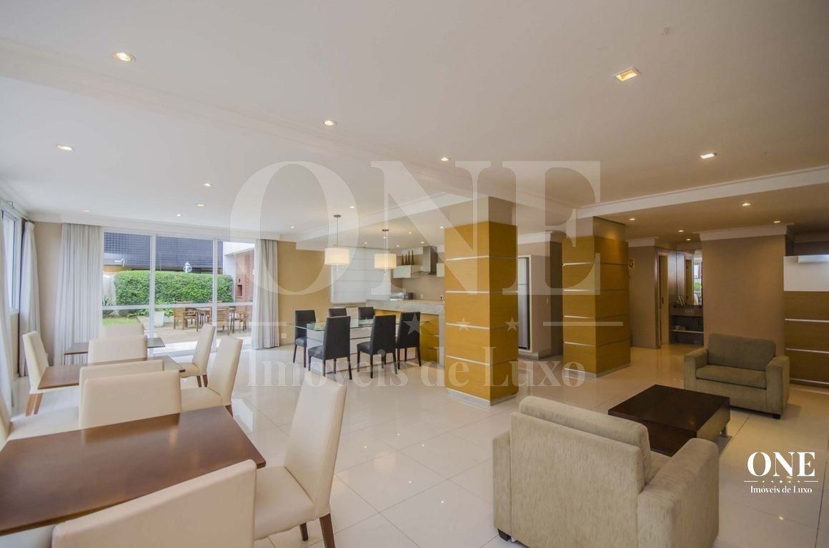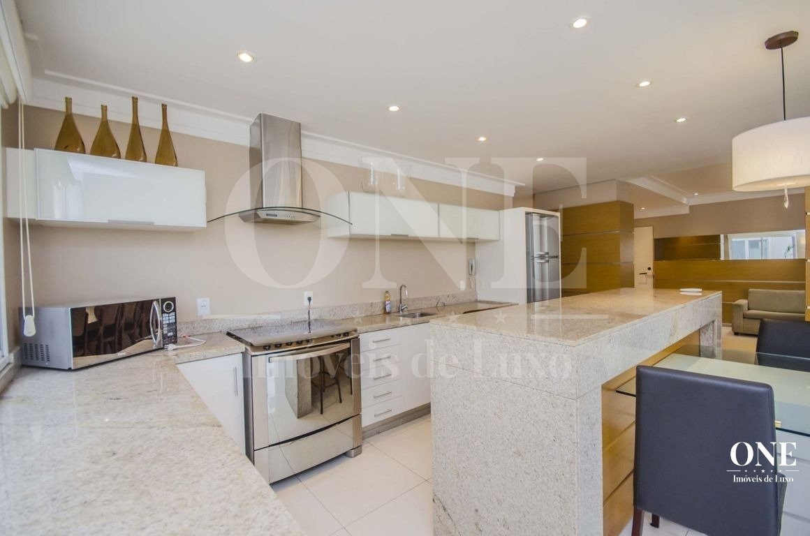Apartamento para alugar mobiliado com 4 dormitórios, sendo 2 suítes, 179m de área privativa, living com ar condicionado, sacada fechada e ampla com churrasqueira, escrivaninha, cômodas, ventiladores de teto e cortinas, banheiro social com armários, cozinha completa com armários, fogão, geladeira, micro-ondas e coifa e área de serviço.