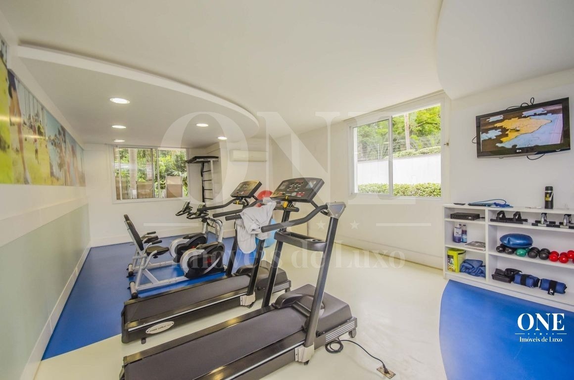 Pavimento inferior com área de serviços, academia, banheiro e opção para o quarto dormitório, além de um depósito que serve de oficina/marcenaria. Garagem coberta para 2 carros.