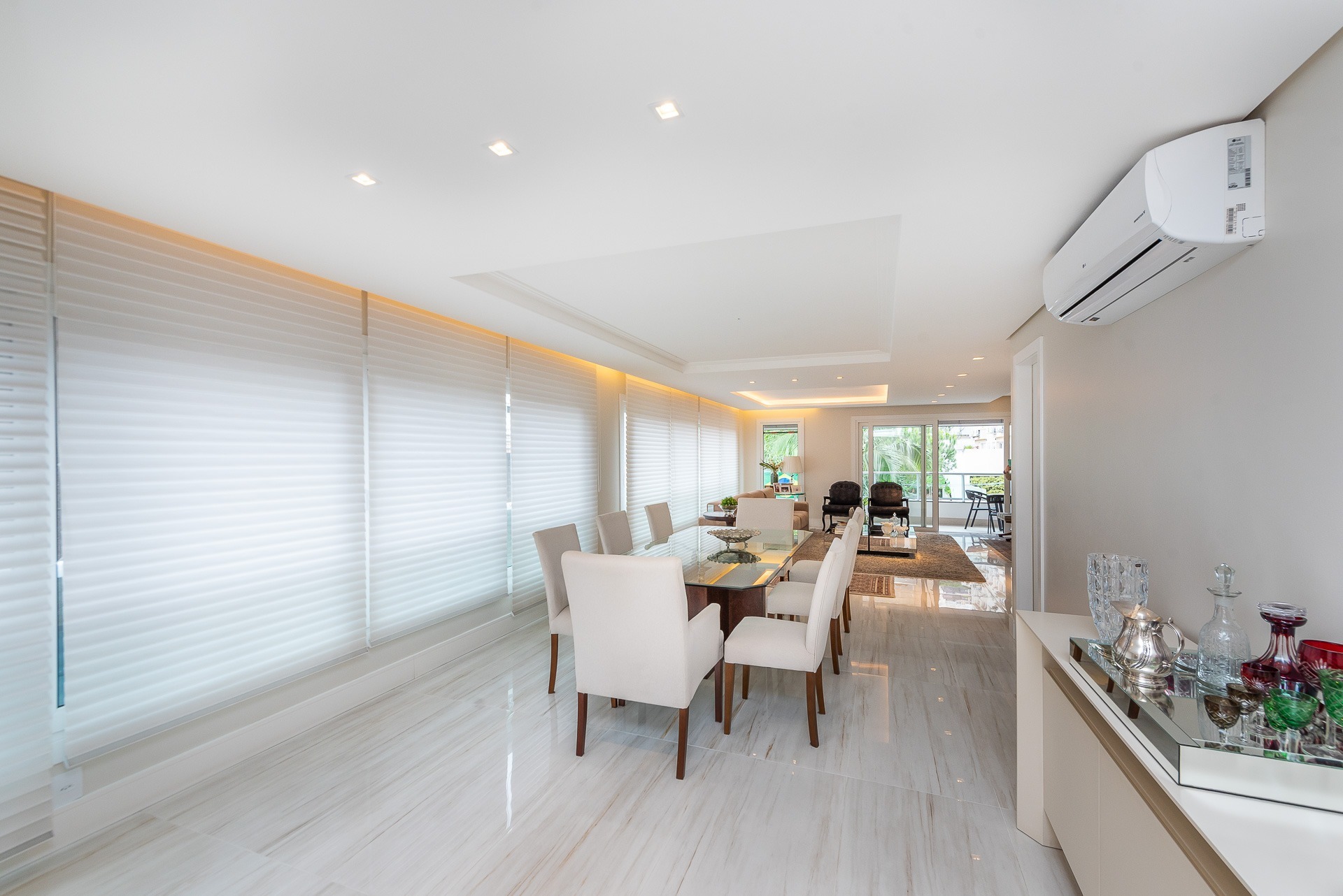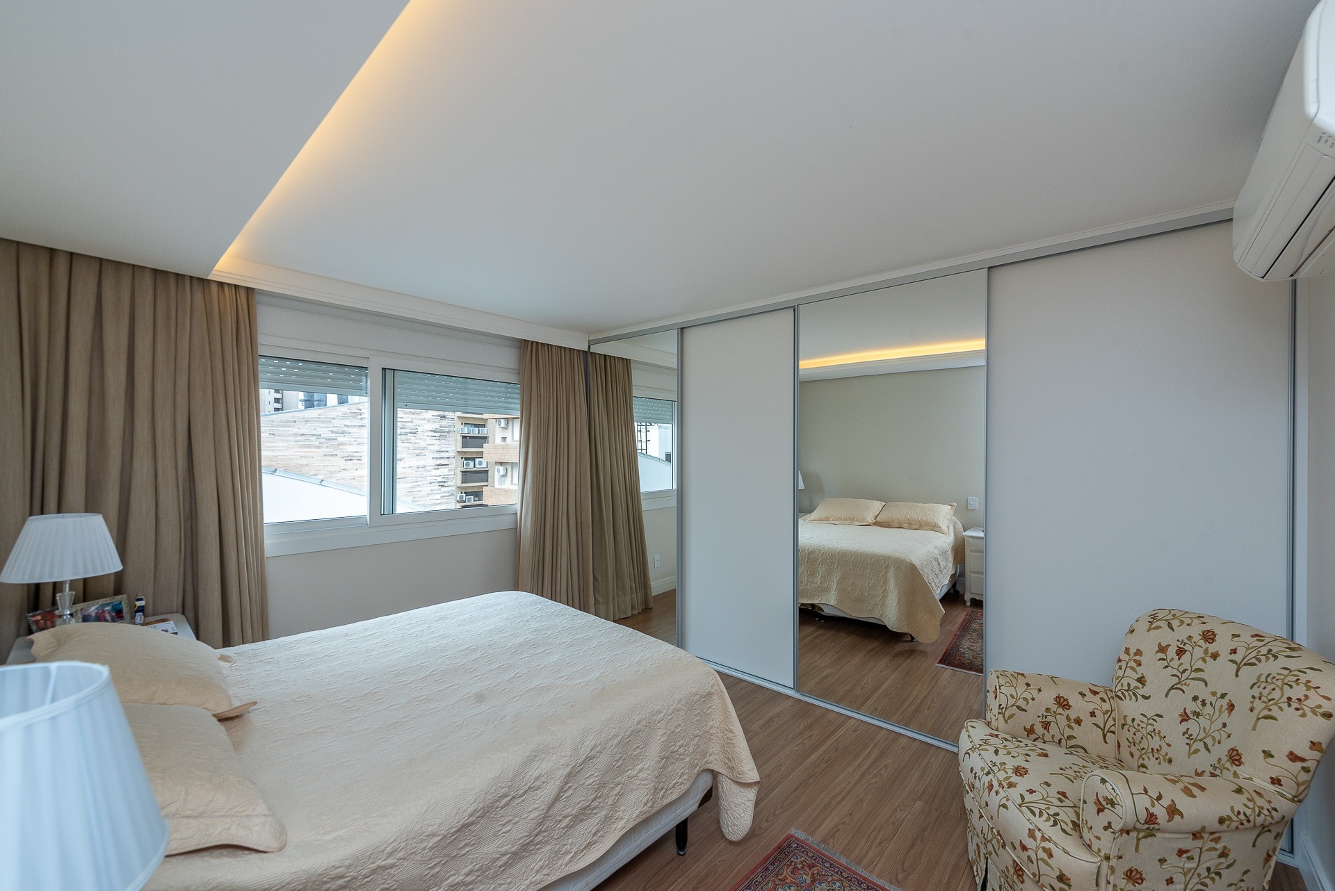 Apartamento para alugar mobiliado com 4 dormitórios, sendo 2 suítes, 179m de área privativa, living com ar condicionado, sacada fechada e ampla com churrasqueira, escrivaninha, cômodas, ventiladores de teto e cortinas, banheiro social com armários, cozinha completa com armários, fogão, geladeira, micro-ondas e coifa e área de serviço.
