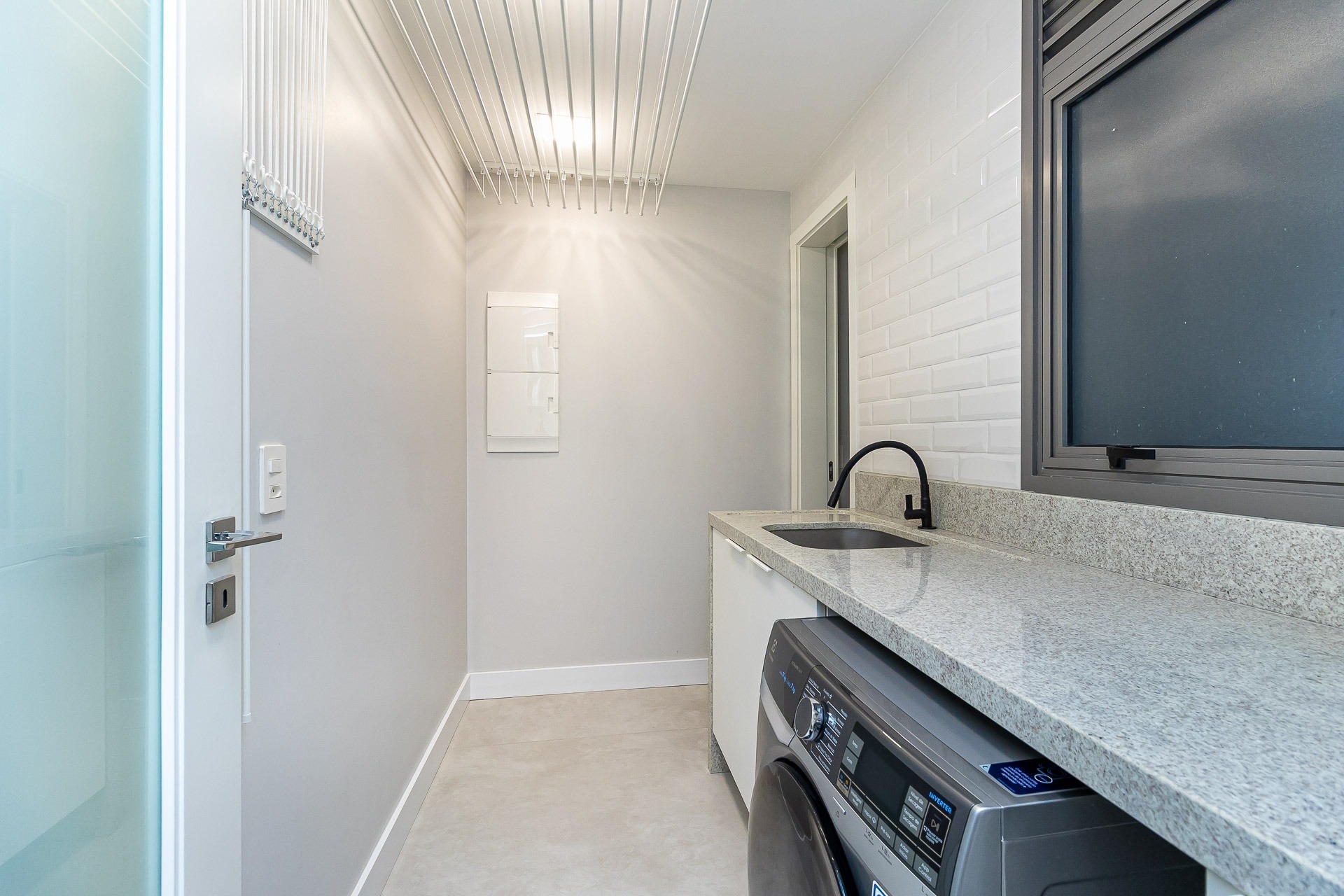 Pavimento inferior com área de serviços, academia, banheiro e opção para o quarto dormitório, além de um depósito que serve de oficina/marcenaria. Garagem coberta para 2 carros.