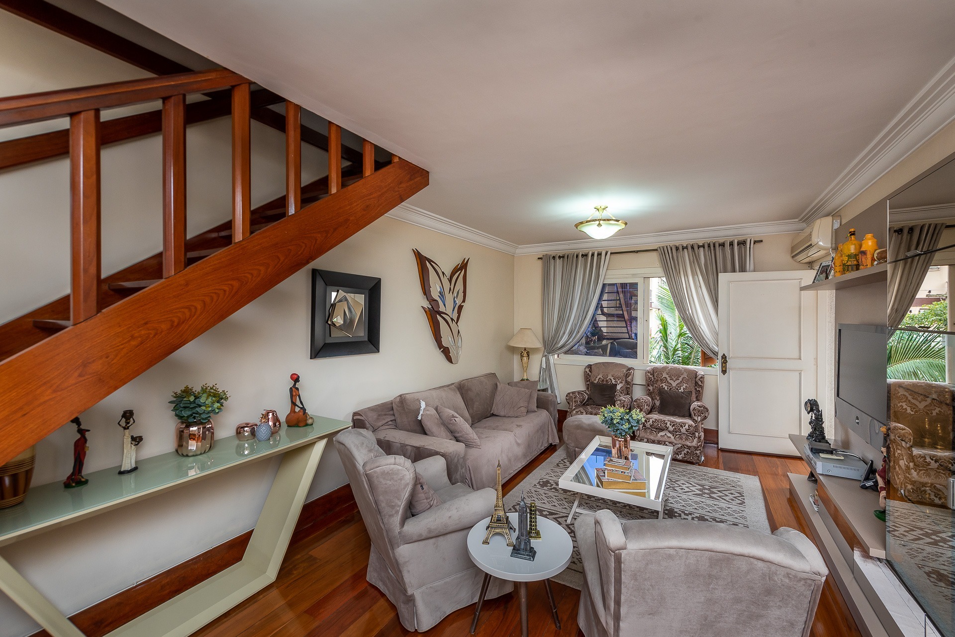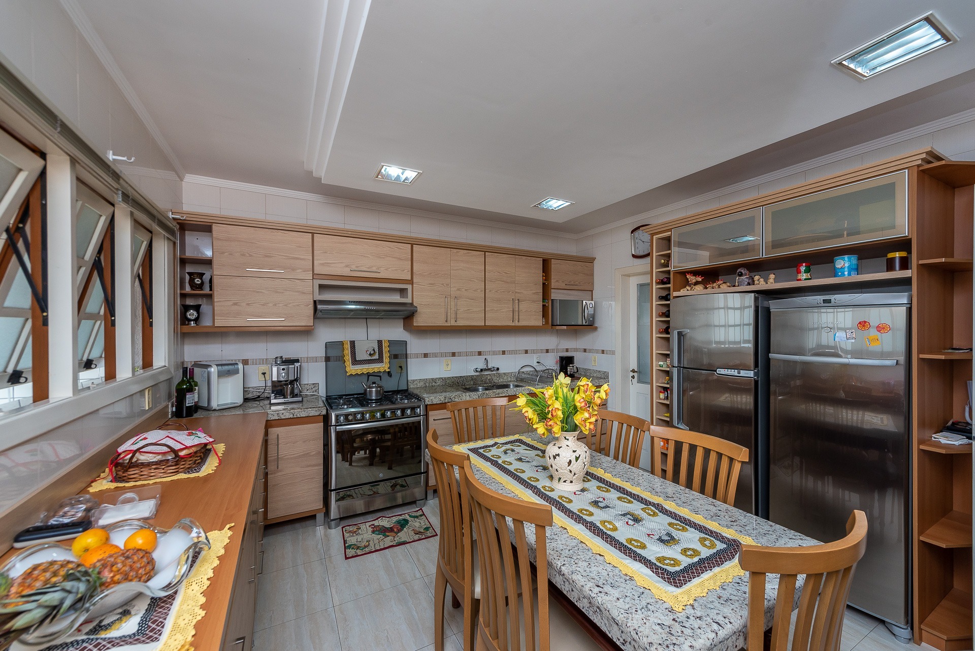 Amplo living com 3 ambientes com lareira, voltado para uma linda área de preservação permanente e panorâmica, churrasqueira gourmet integrada ao living, lavabo, copa cozinha, area de serviço e banheiro auxiliar.