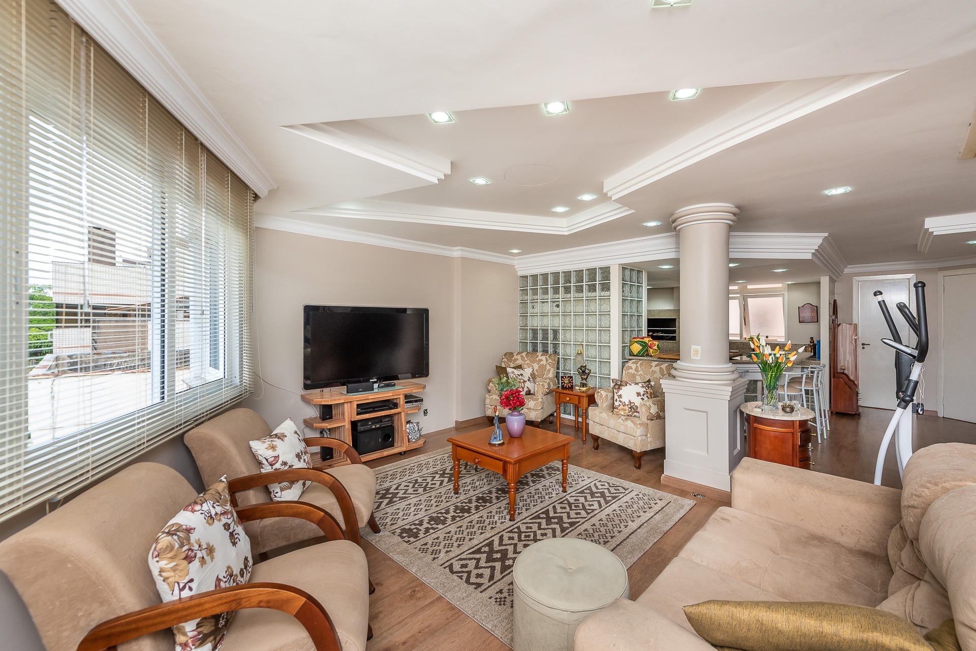 Apartamento semimobiliado gardem 3 dormitórios sendo 1 suíte, com 143m² de área privativa 1 vaga dupla. Living estendido com pátio integrado e espaço gourmet com churrasqueira, cozinha área se serviço com pátio. Ambiente com ótima iluminação e ventilação natural. Na área intima são 3 dormitórios sendo 1 suíte com gabinete, 2 dormitórios sendo 1 usado como home office e banheiro auxiliar. Prédio en...