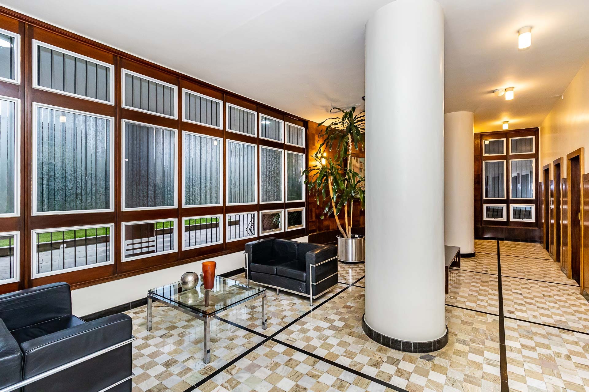 Seus traços limpos e suaves surgem em harmonia com uma rua calma, arborizada e bem localizada.