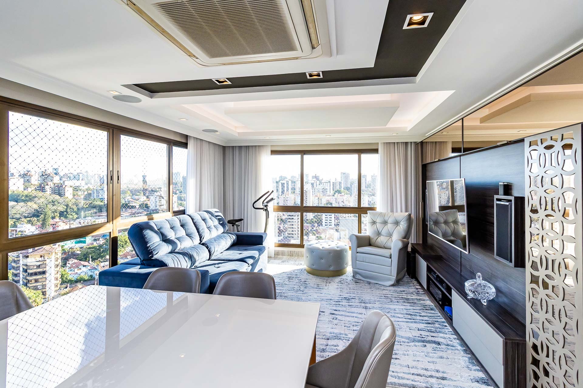 Apartamento semimobiliado gardem 3 dormitórios sendo 1 suíte, com 143m² de área privativa 1 vaga dupla. Living estendido com pátio integrado e espaço gourmet com churrasqueira, cozinha área se serviço com pátio. Ambiente com ótima iluminação e ventilação natural. Na área intima são 3 dormitórios sendo 1 suíte com gabinete, 2 dormitórios sendo 1 usado como home office e banheiro auxiliar. Prédio en...