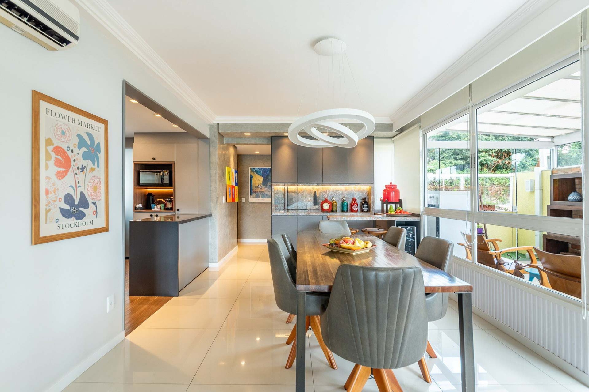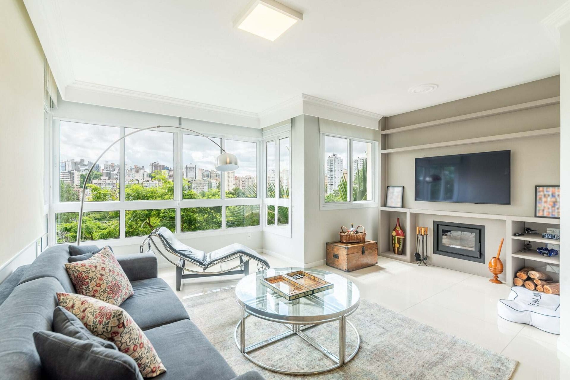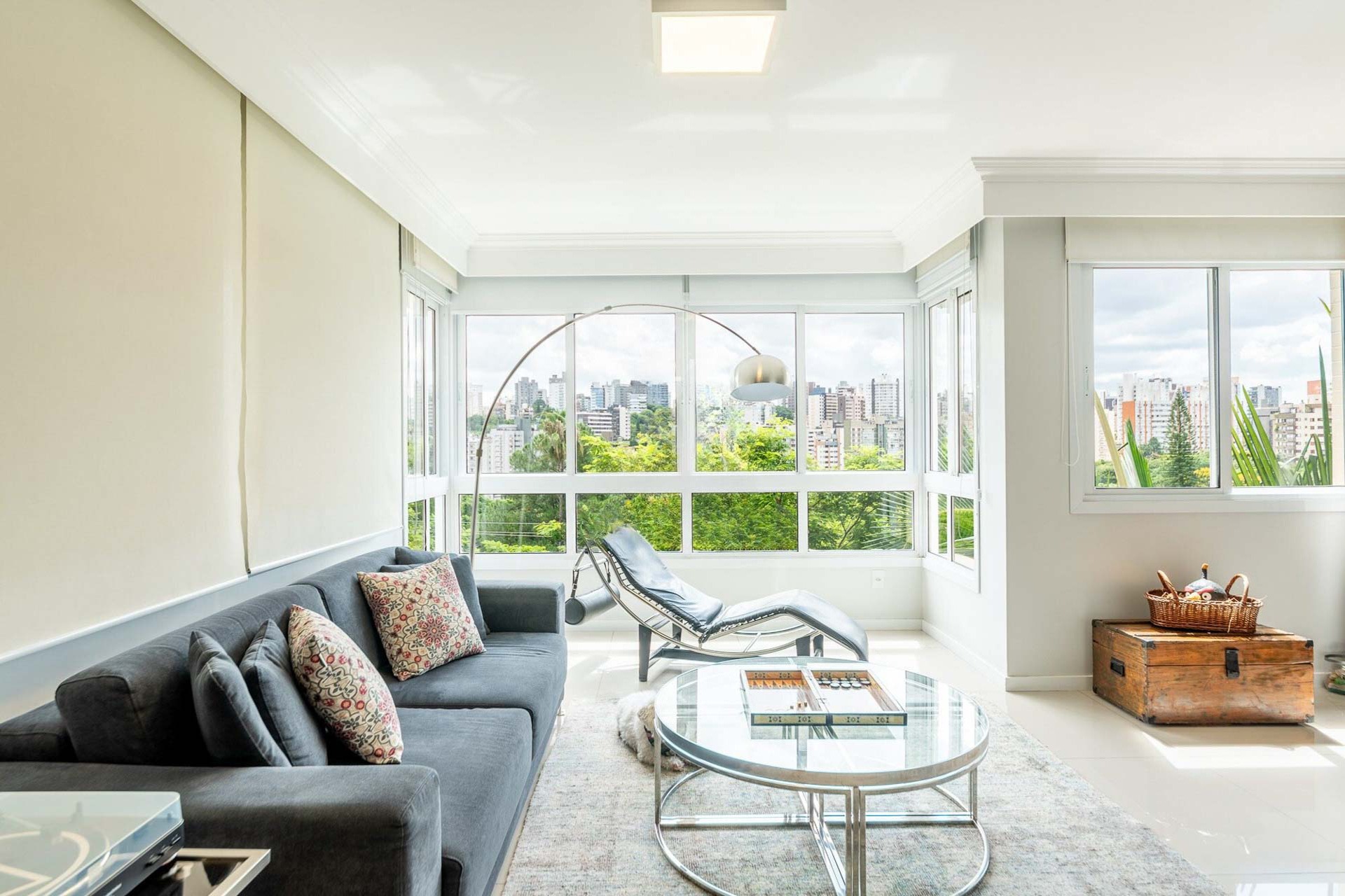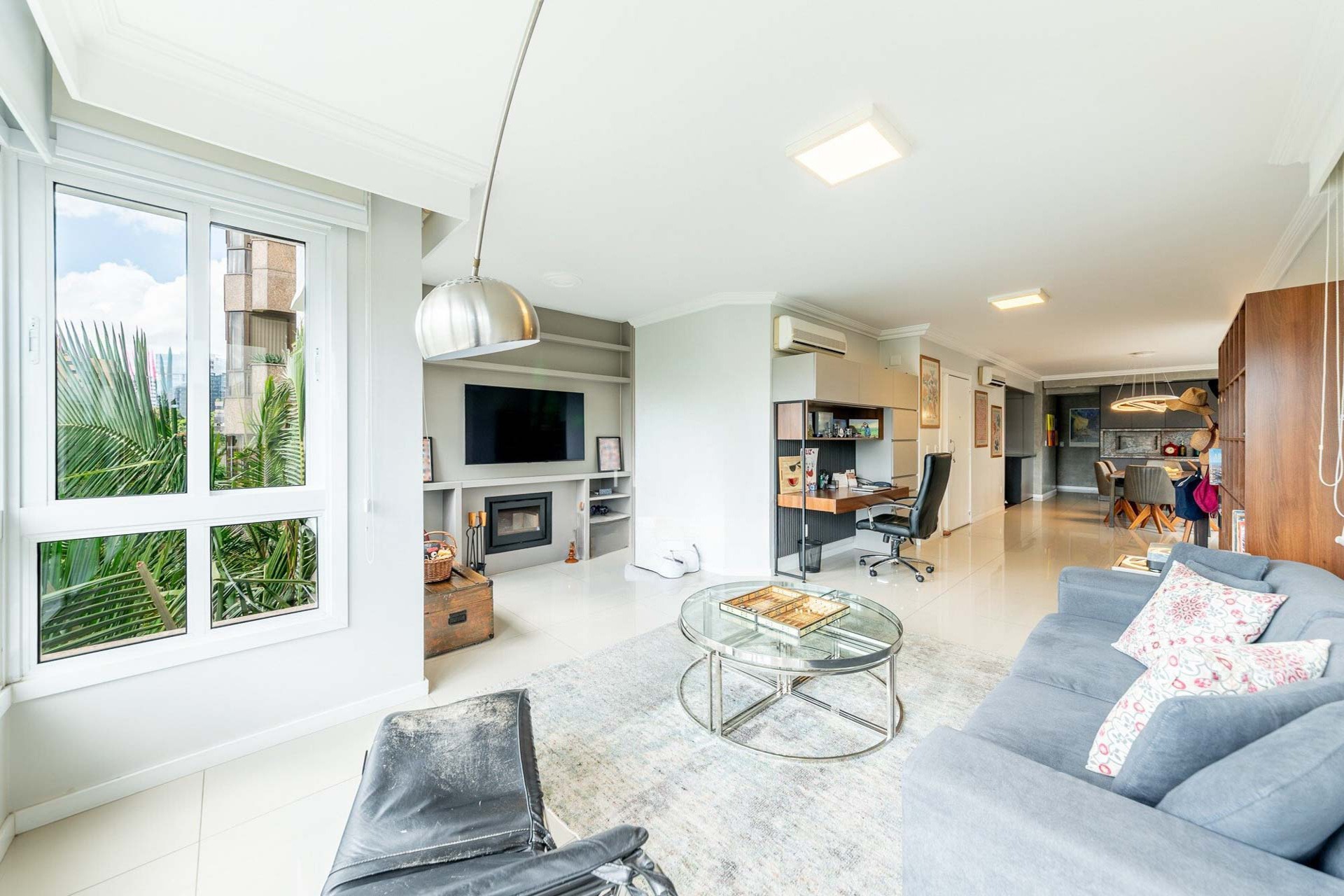 Com vista deslumbrante para o Parcão, living 2 ambientes bem definido, com marcenaria sob medida, sala de estar com esquadrias de vidro duplo com isolamento térmico-acústico, cozinha americana, área de serviço separada.