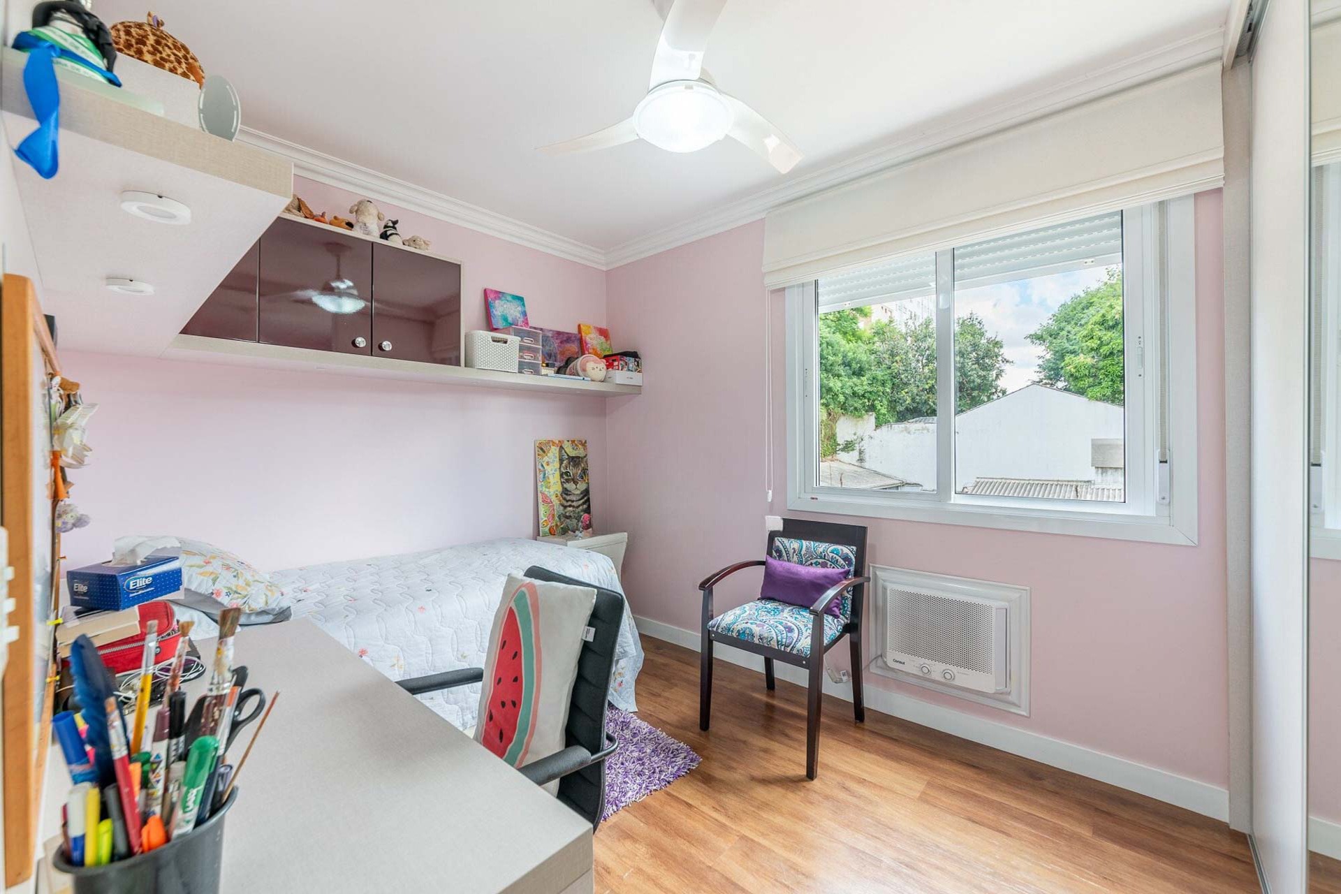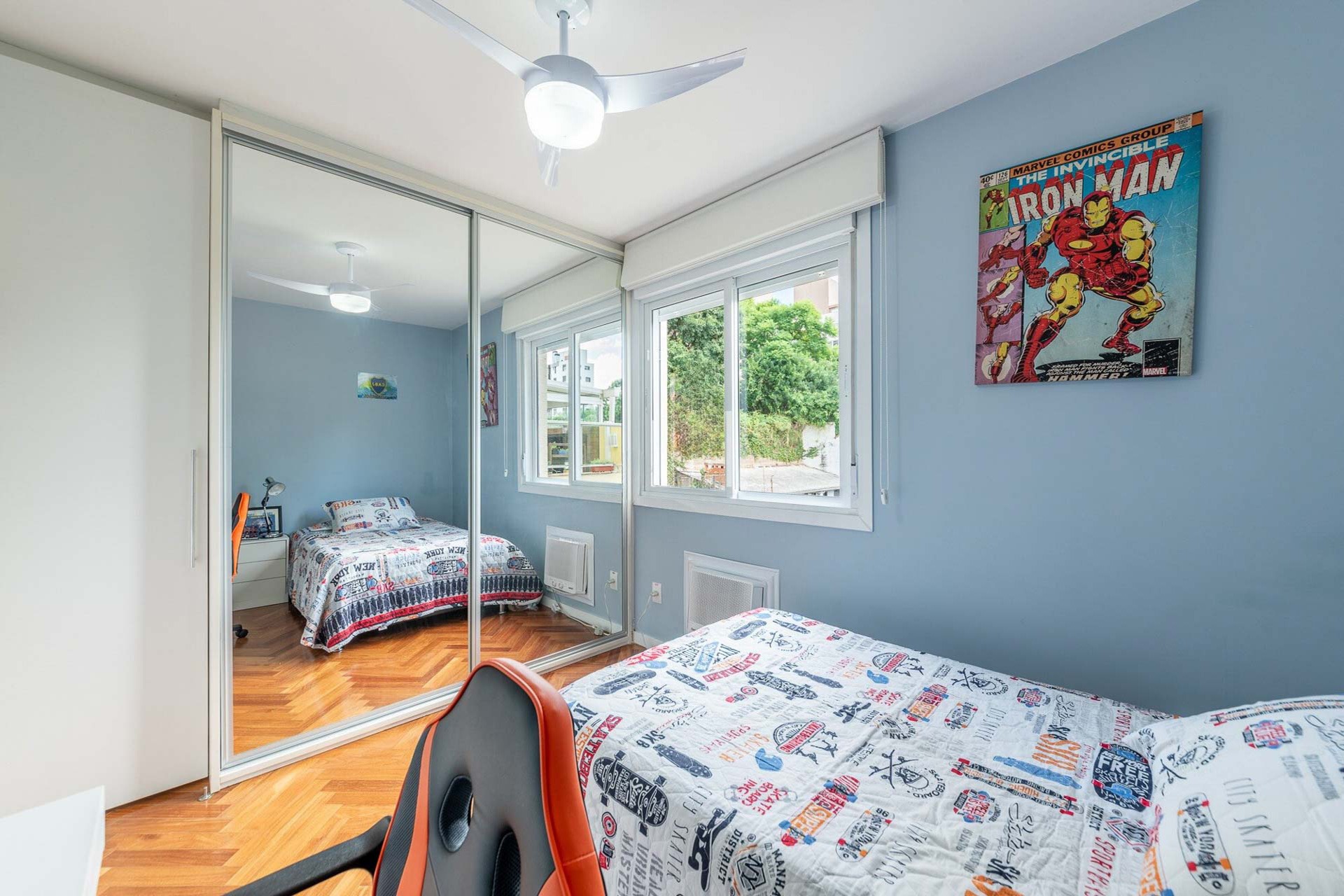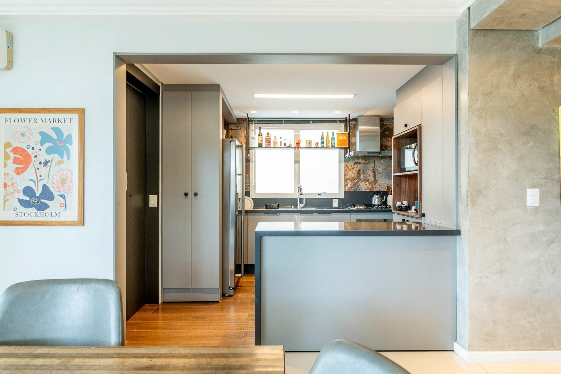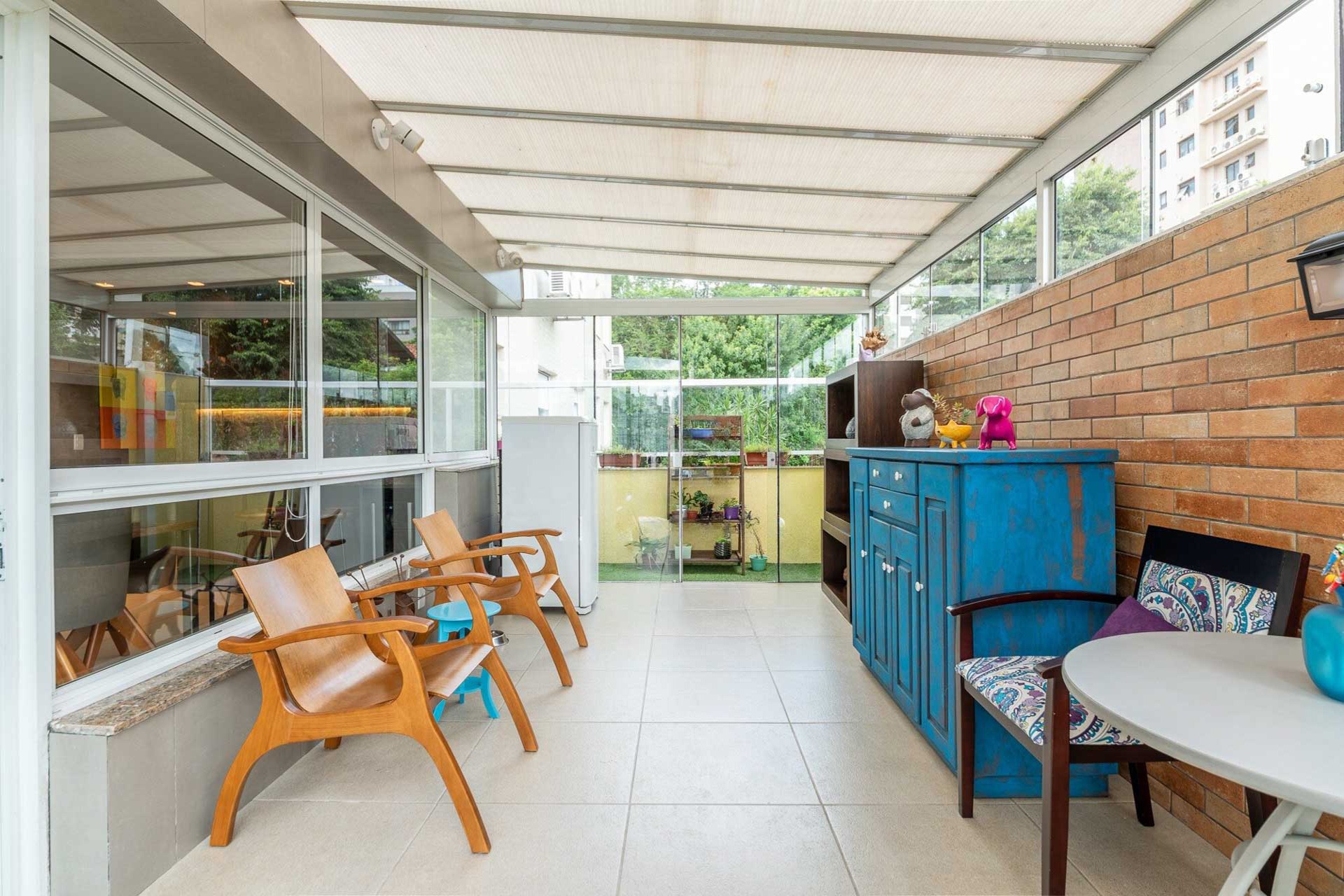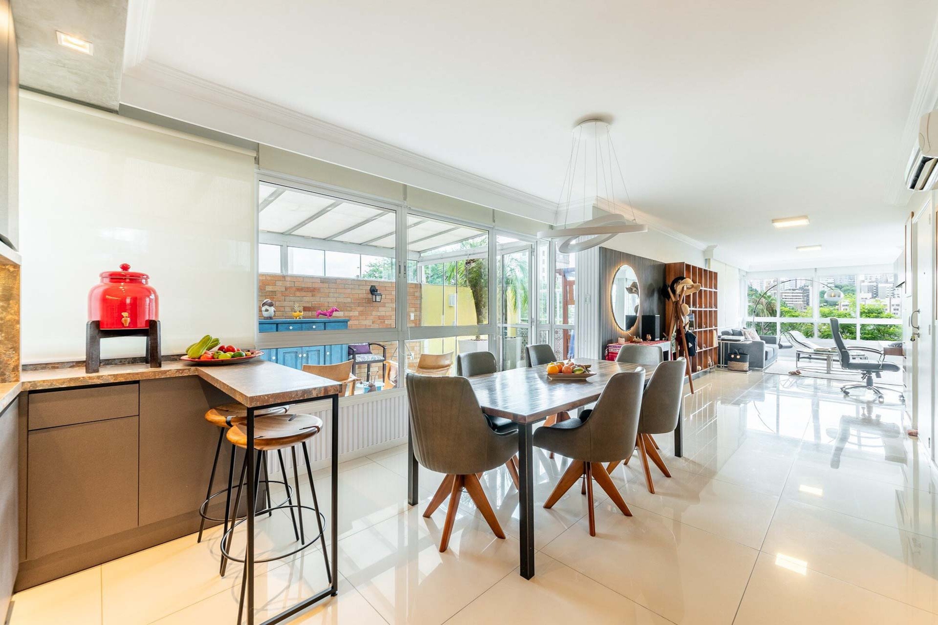 Com vista deslumbrante para o Parcão, living 2 ambientes bem definido, com marcenaria sob medida, sala de estar com esquadrias de vidro duplo com isolamento térmico-acústico, cozinha americana, área de serviço separada.