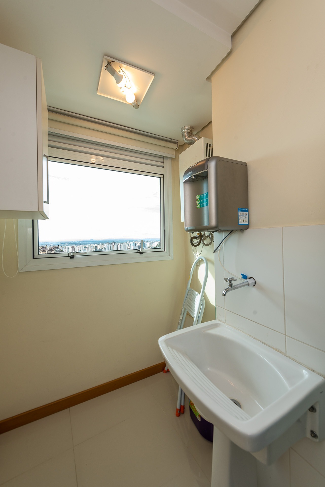 Pavimento inferior com área de serviços, academia, banheiro e opção para o quarto dormitório, além de um depósito que serve de oficina/marcenaria. Garagem coberta para 2 carros.
