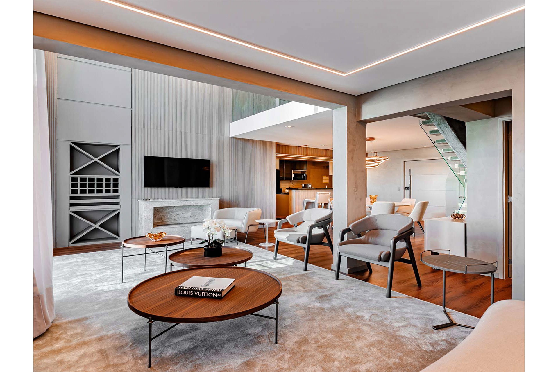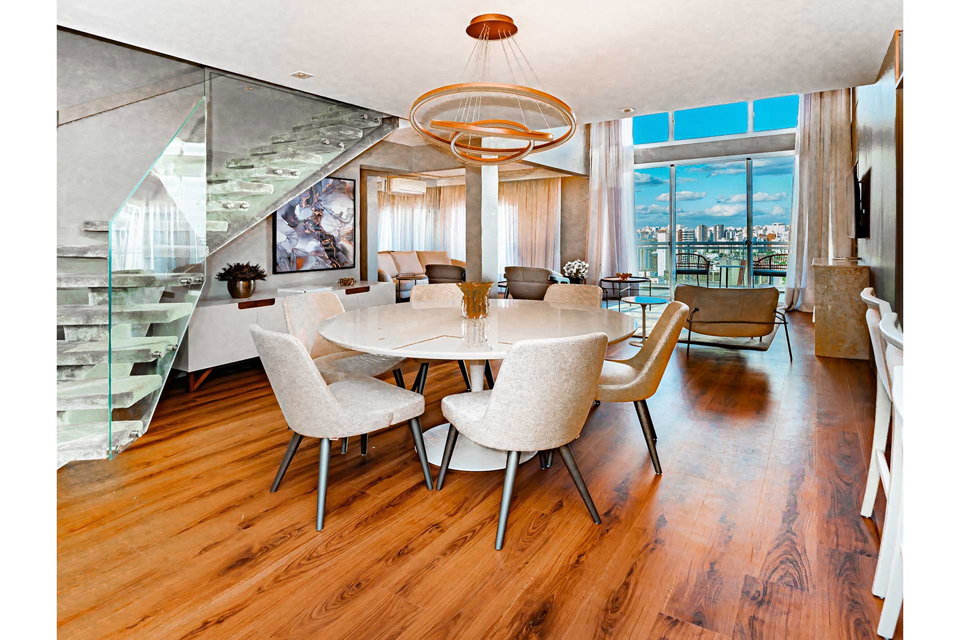 O living é extremamente amplo, permitindo três ambientes distintos, ideal para receber e entreter convidados. A co...