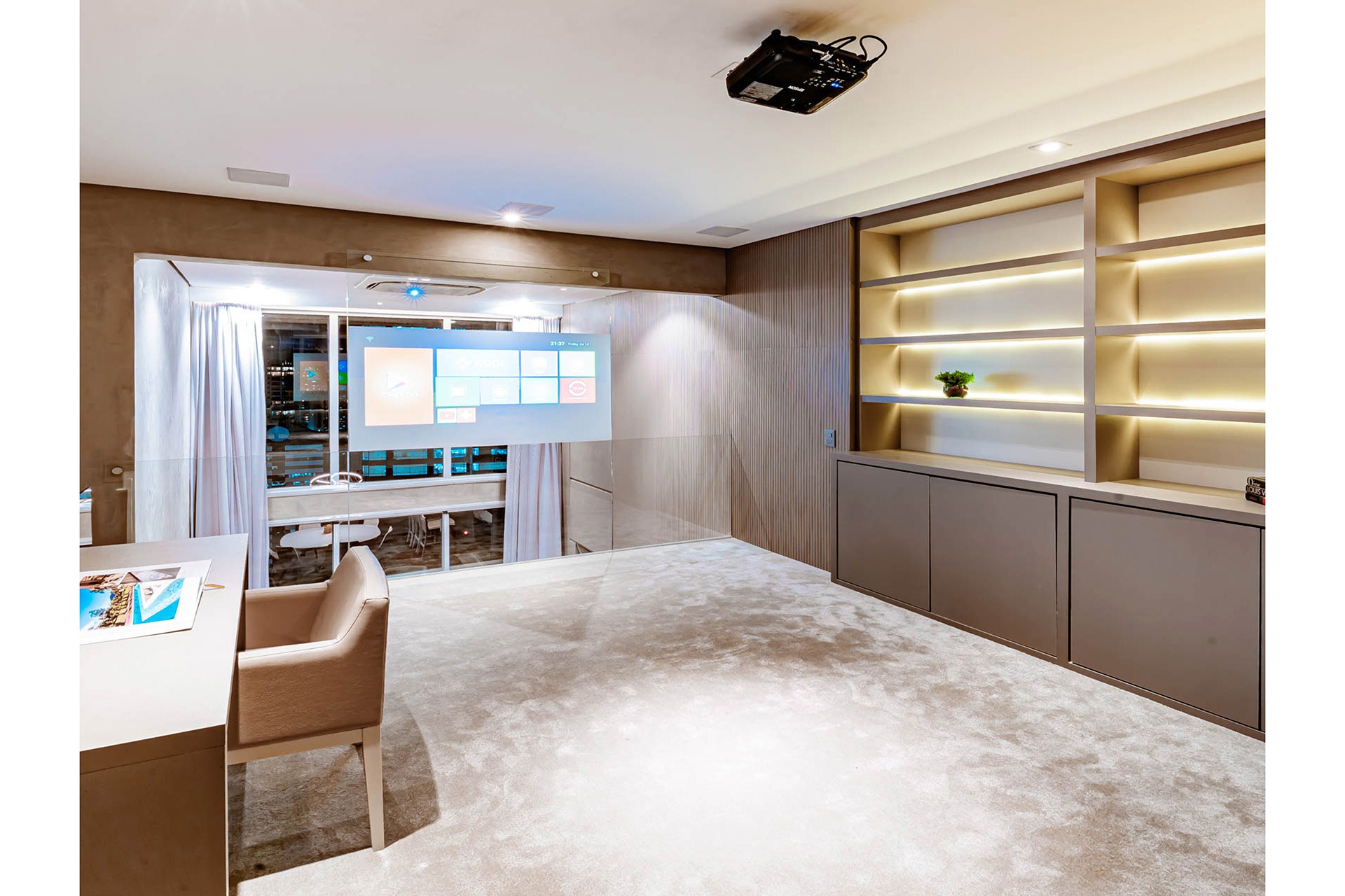Um projeto realizado por Isay Weinfeld. O passeio se inicia num primeiro hall intimista, todo preto, que se abre para uma imensa caixa branca, com pé direito duplo e iluminação natural por domus, nos dando a certeza de estarmos em um lugar muito especial e surpreendente. Seguimos para generoso living e sala de jantar voltados para um amplo gramado com longa piscina de raia atravessando todo o esp...