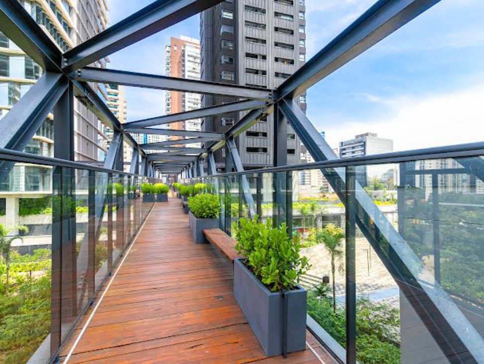 Áreas de lazer ao ar livre, como quadras esportivas ou pistas de caminhada