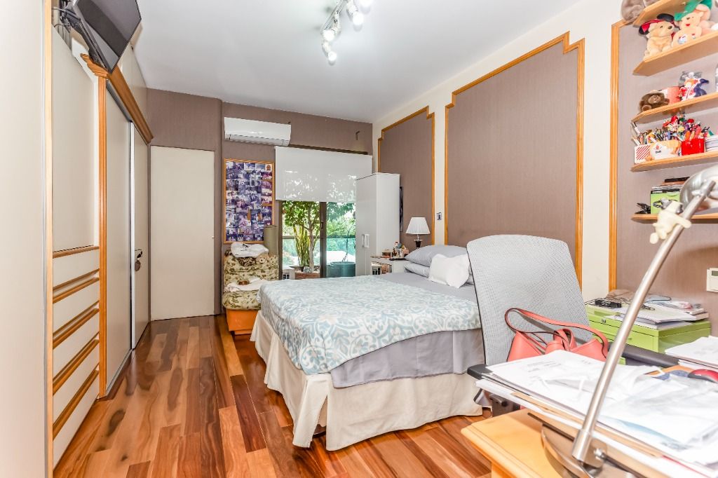 Casa PRONTA PARA MORAR!! Diferenciada, em altíssimo padrão, projetada pelos renomados arquitetos Israel Rewin e João Armentano. Em um terreno de 709 m², a casa de 1209 m² construídos, divide-se em 4 pavimentos. Superior: 4 suítes (1 suíte master com banho sr. e sra.) com closets, sala íntima com mini-copa e central de áudio e vídeo, acesso para as suítes com portas blindadas. Térreo: sala de est...