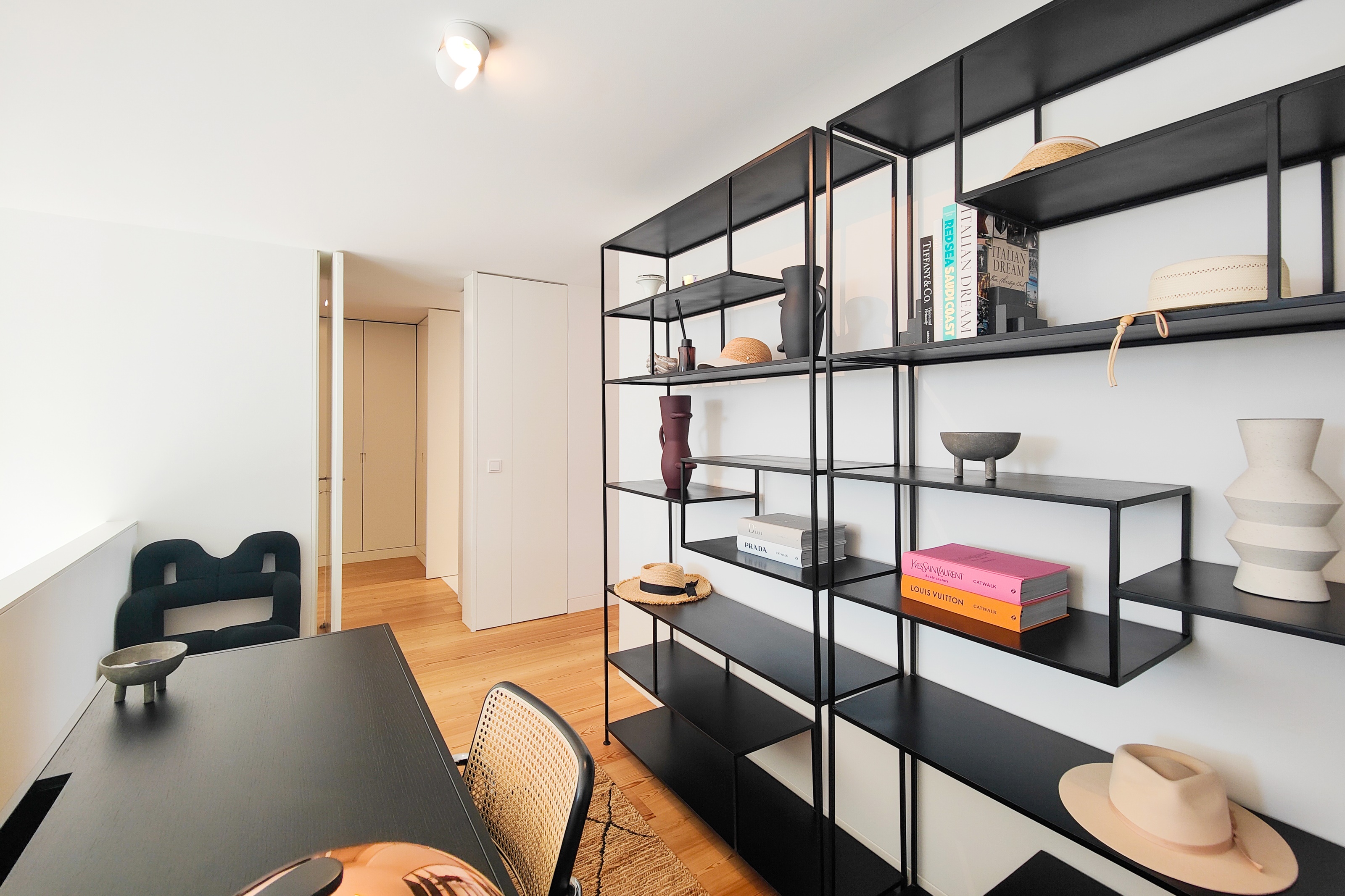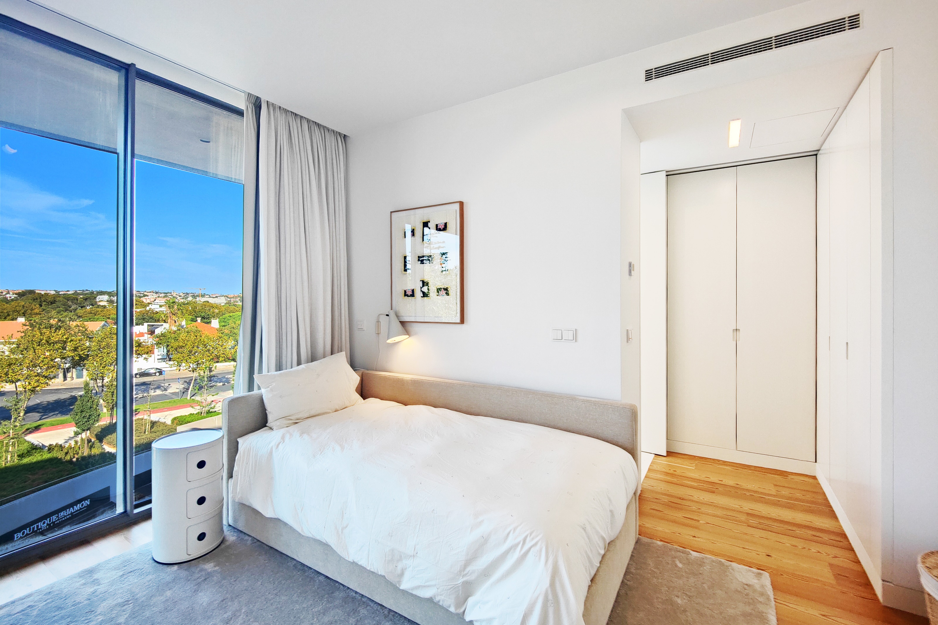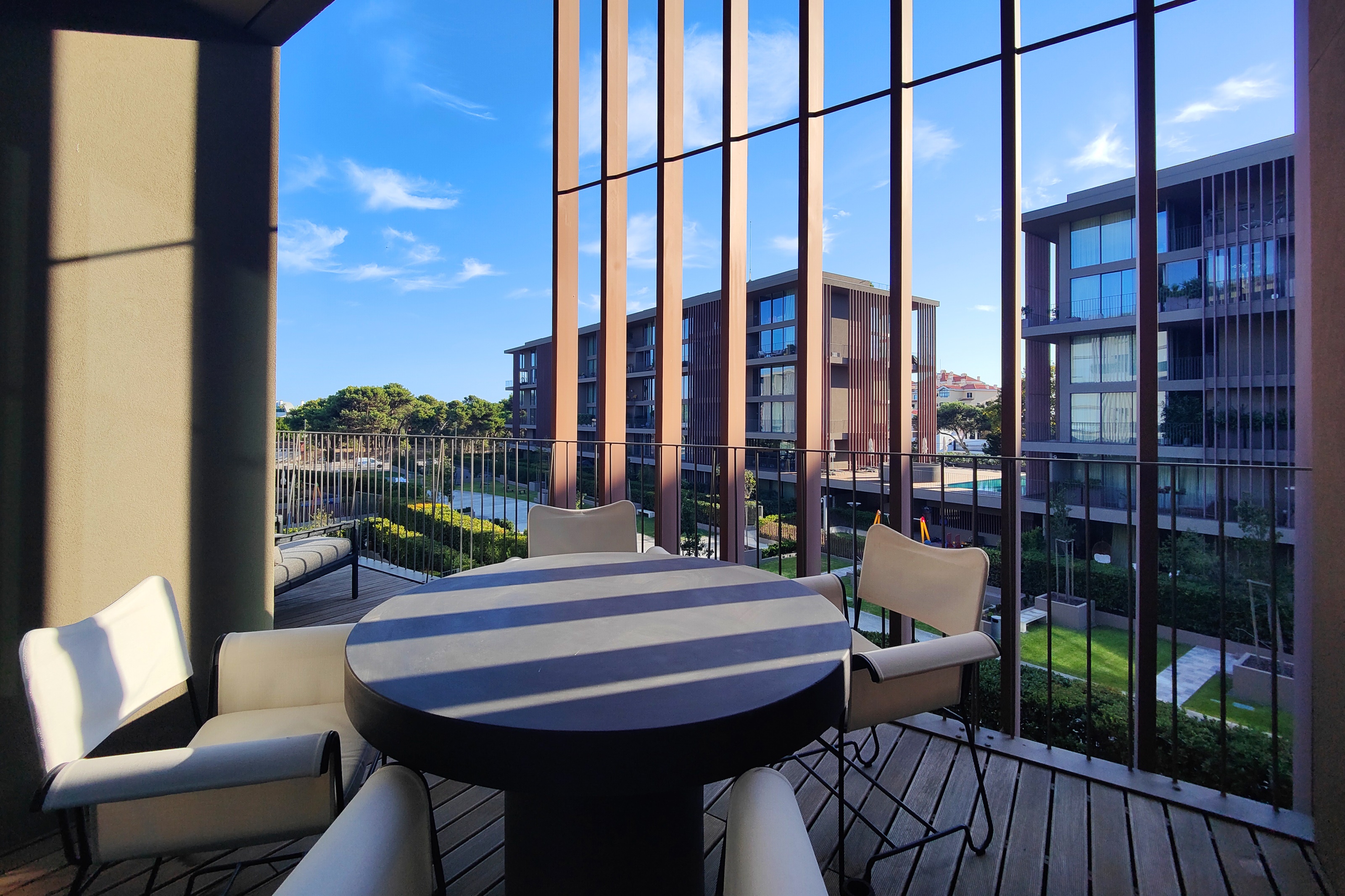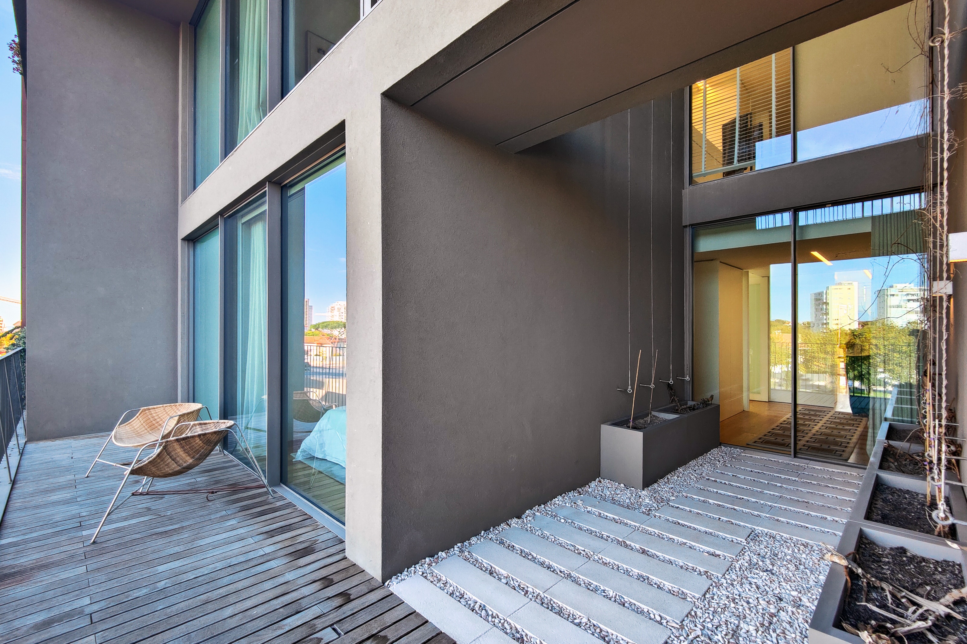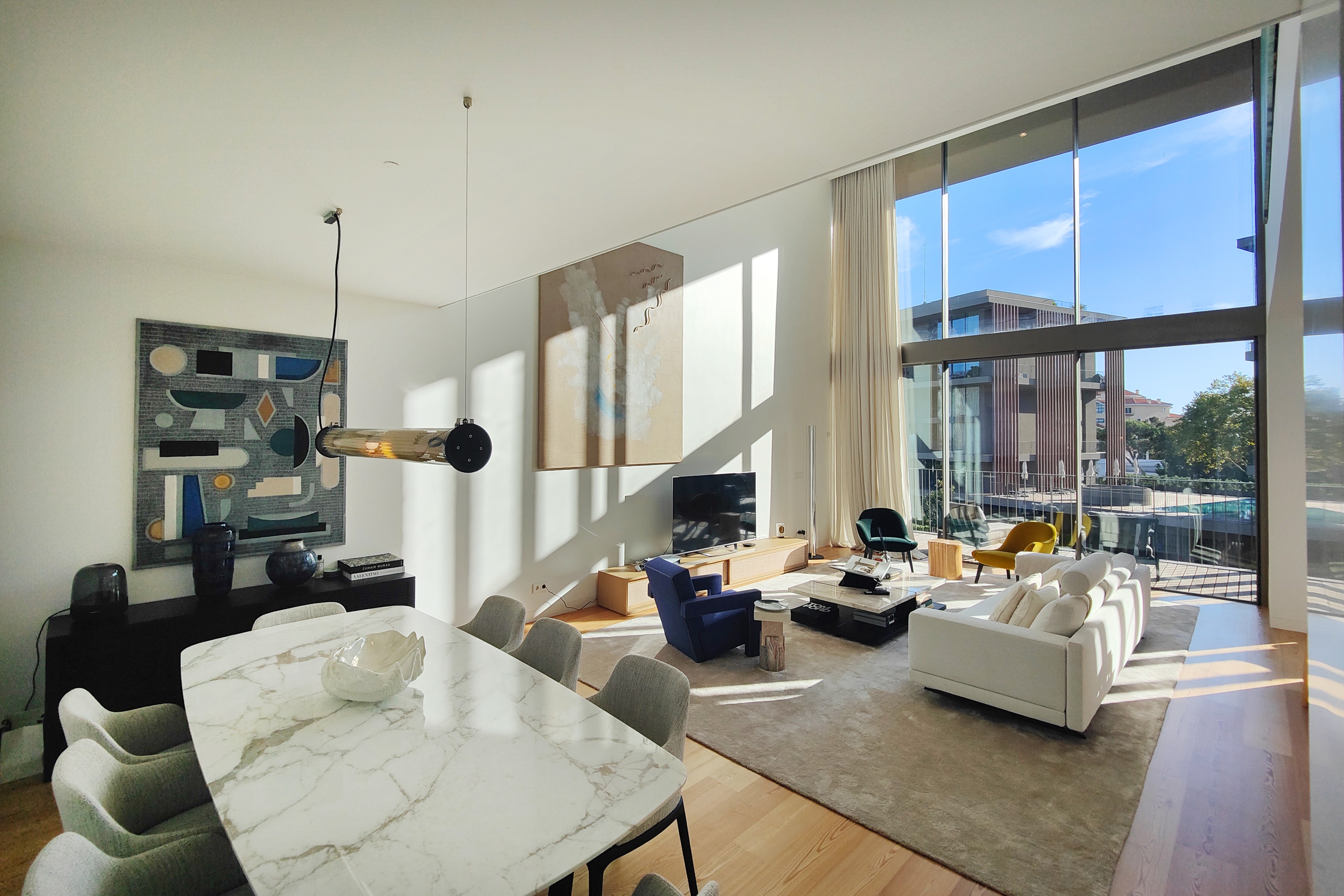 Vendido completamente mobilado, este imóvel destaca-se pela singularidade da sua arquitetura, com zonas de pé direito duplo que conferem amplitude e luminosidade, varandas e janelas com grandes vãos, perfeitas para aproveitar o clima de Cascais, um jardim de inverno que faz a transição entre espaços.