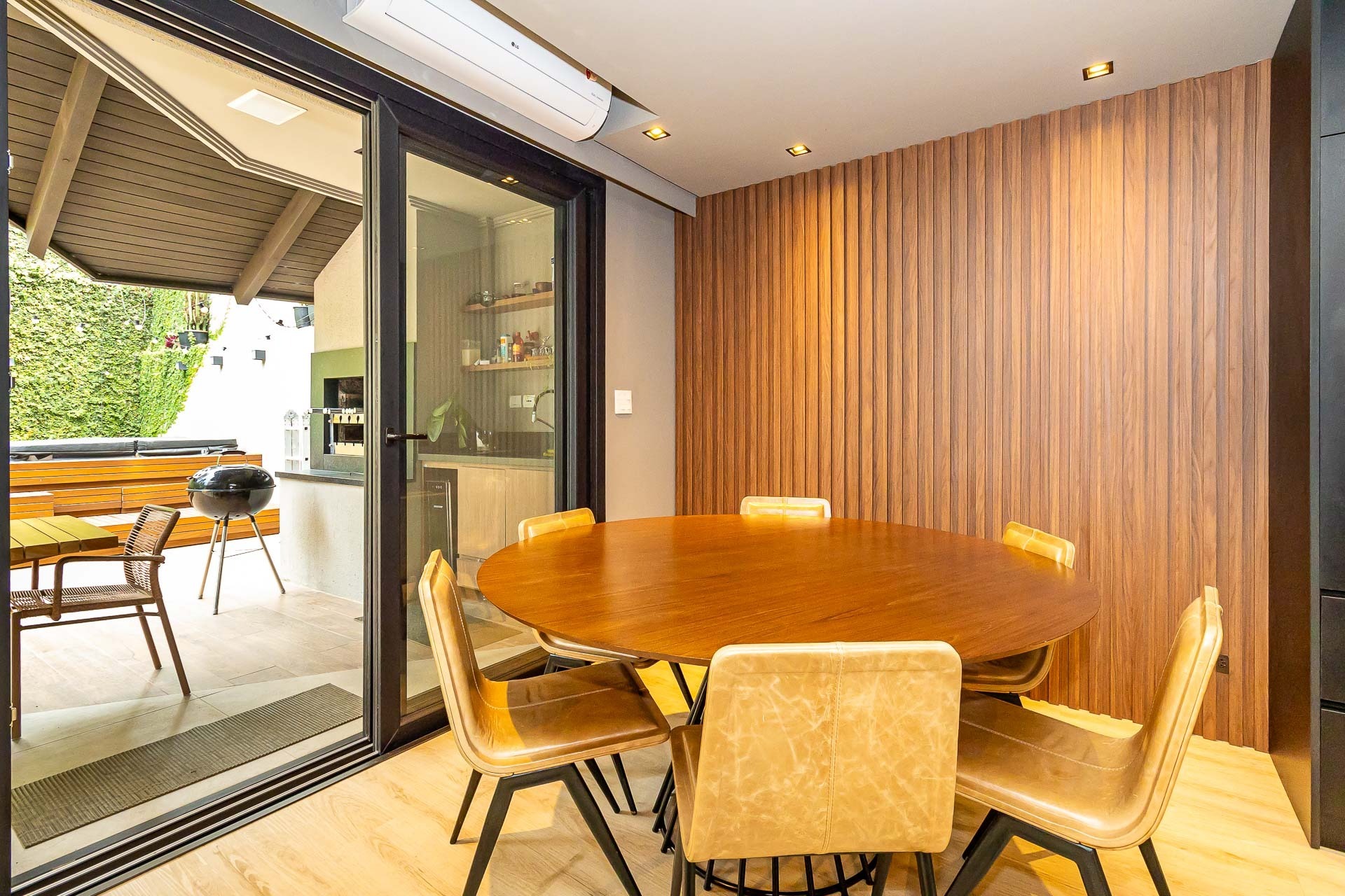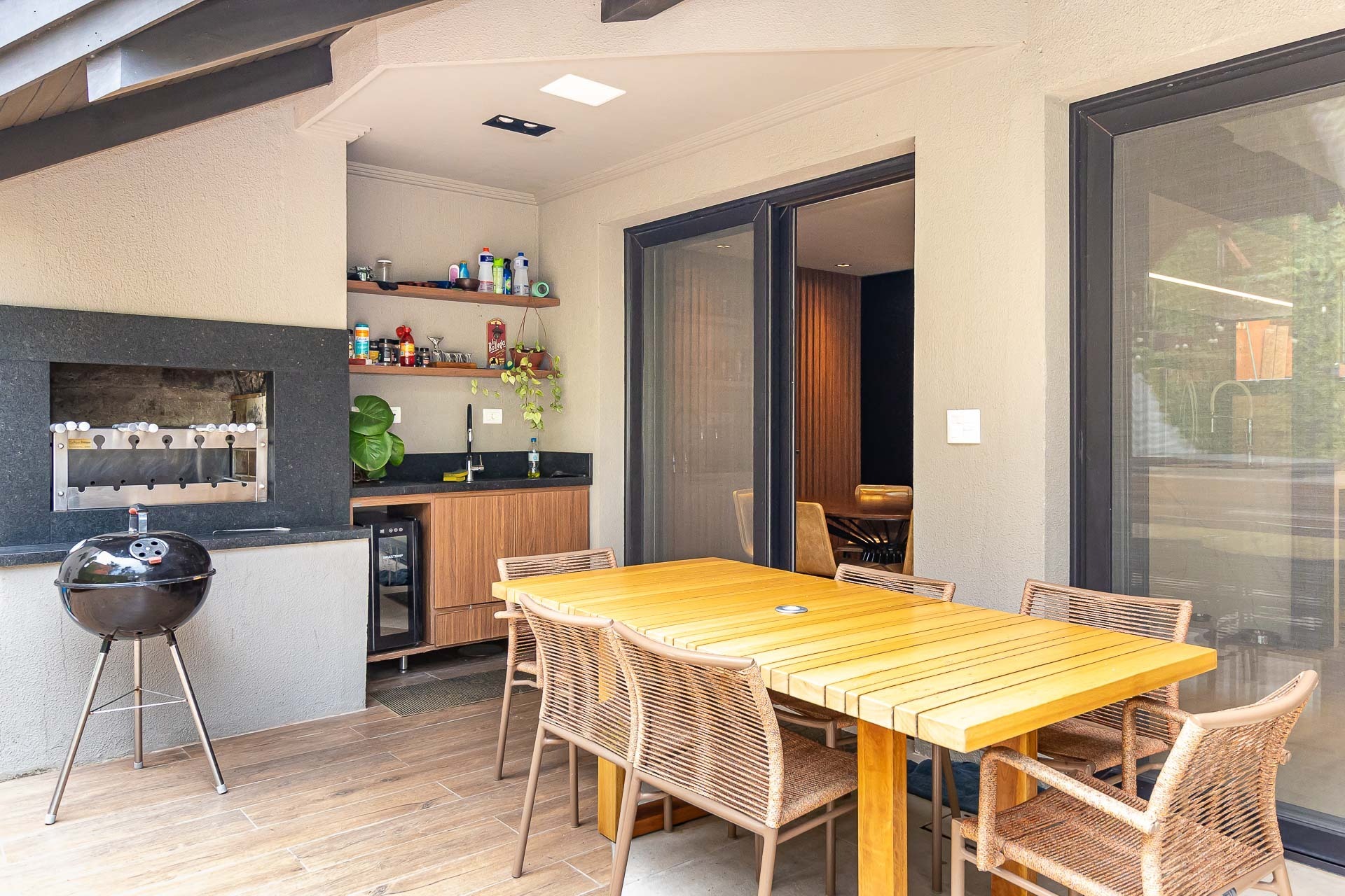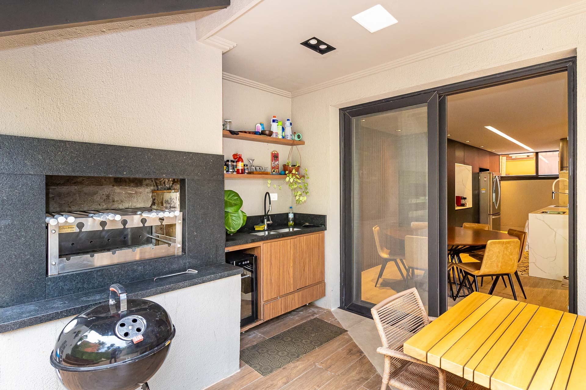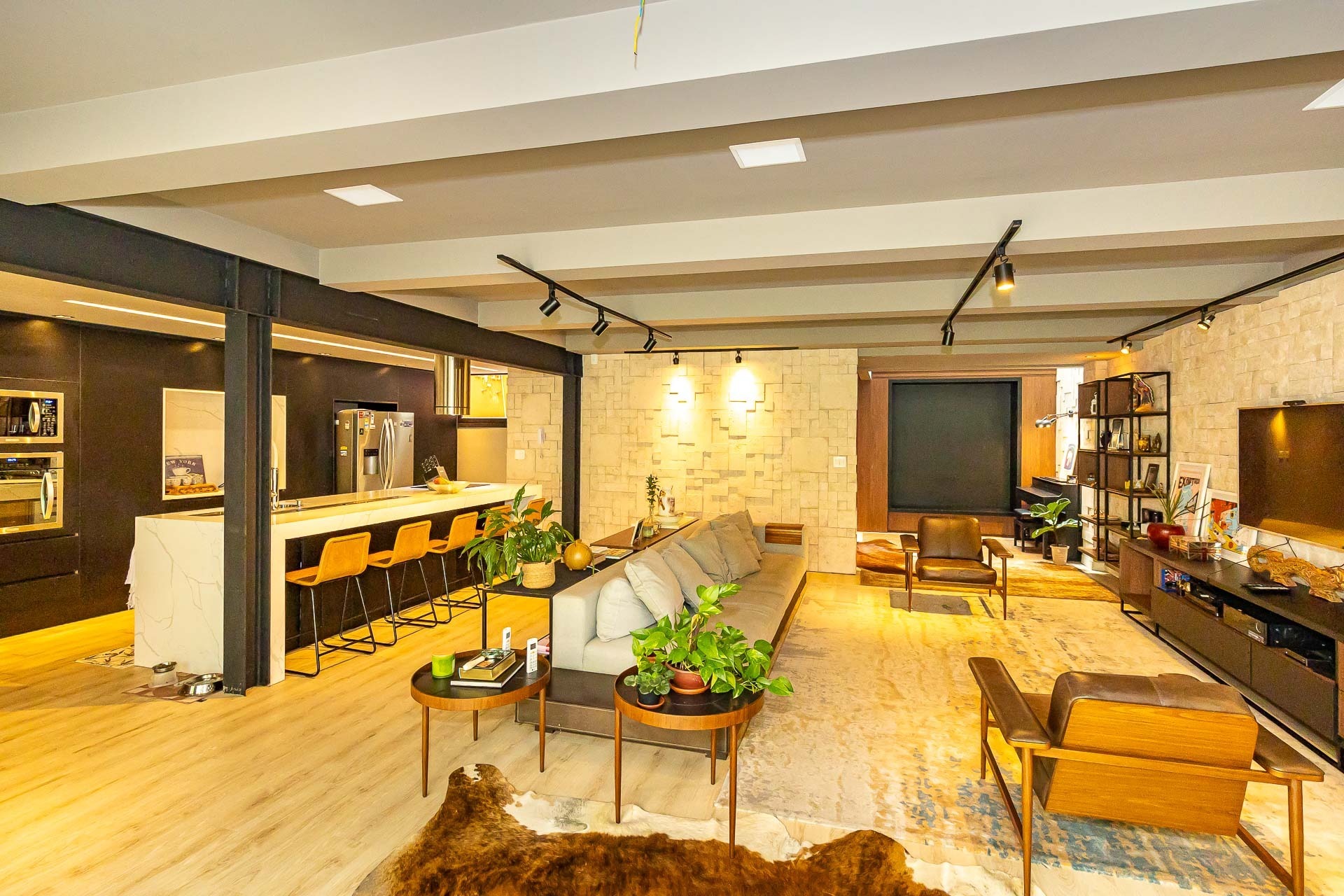 Sofisticado living para 03 ambientes , espaço lareira , espaço churrasqueira , lavabo , cozinha americana. 03 vagas individuais 2 depósitos.