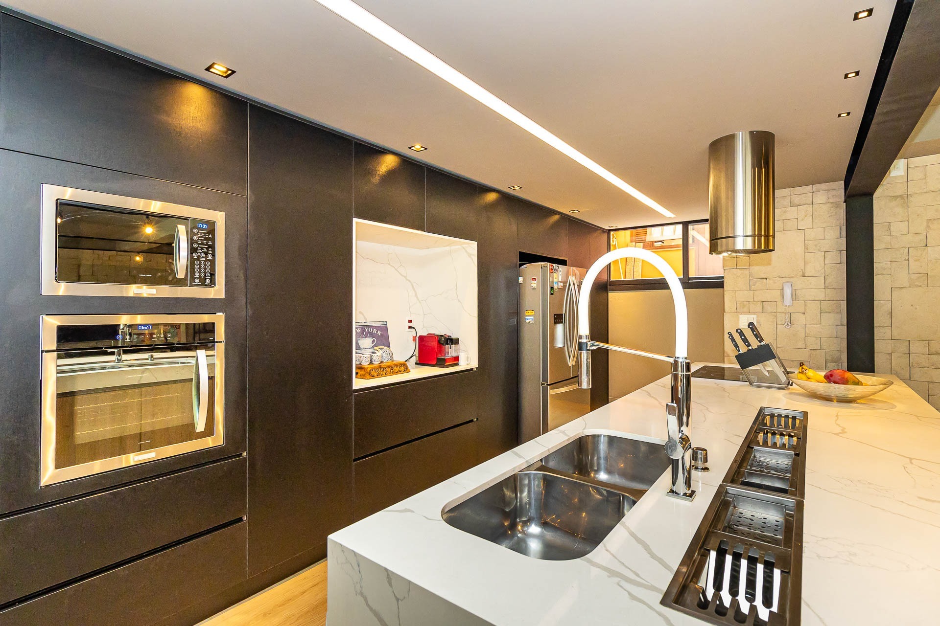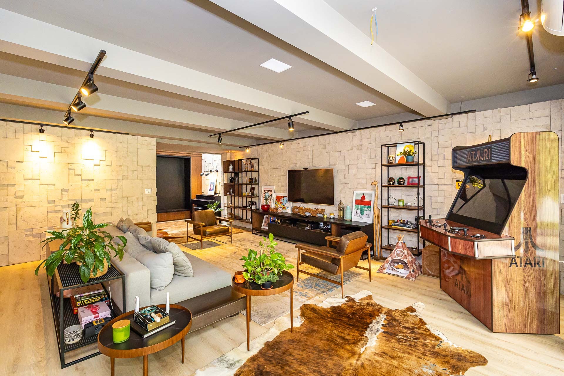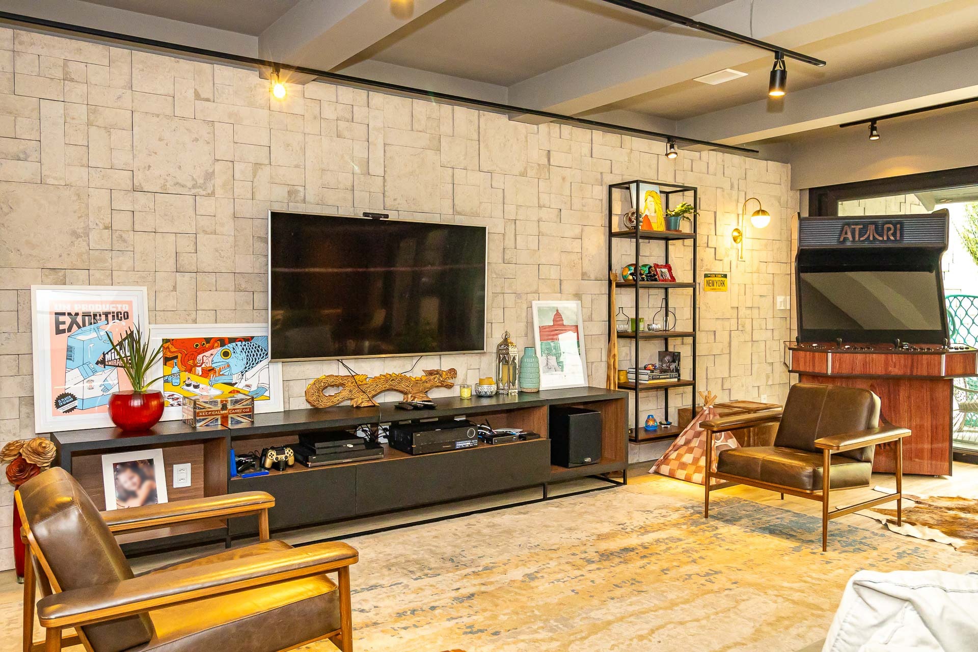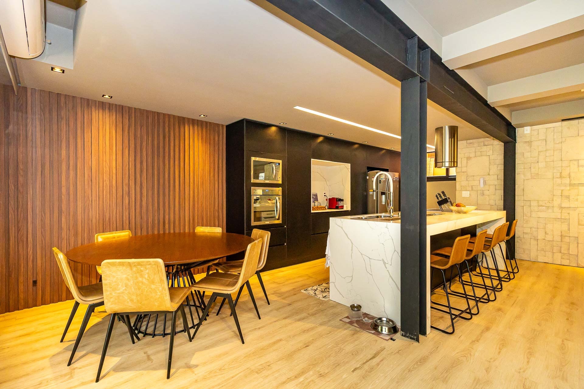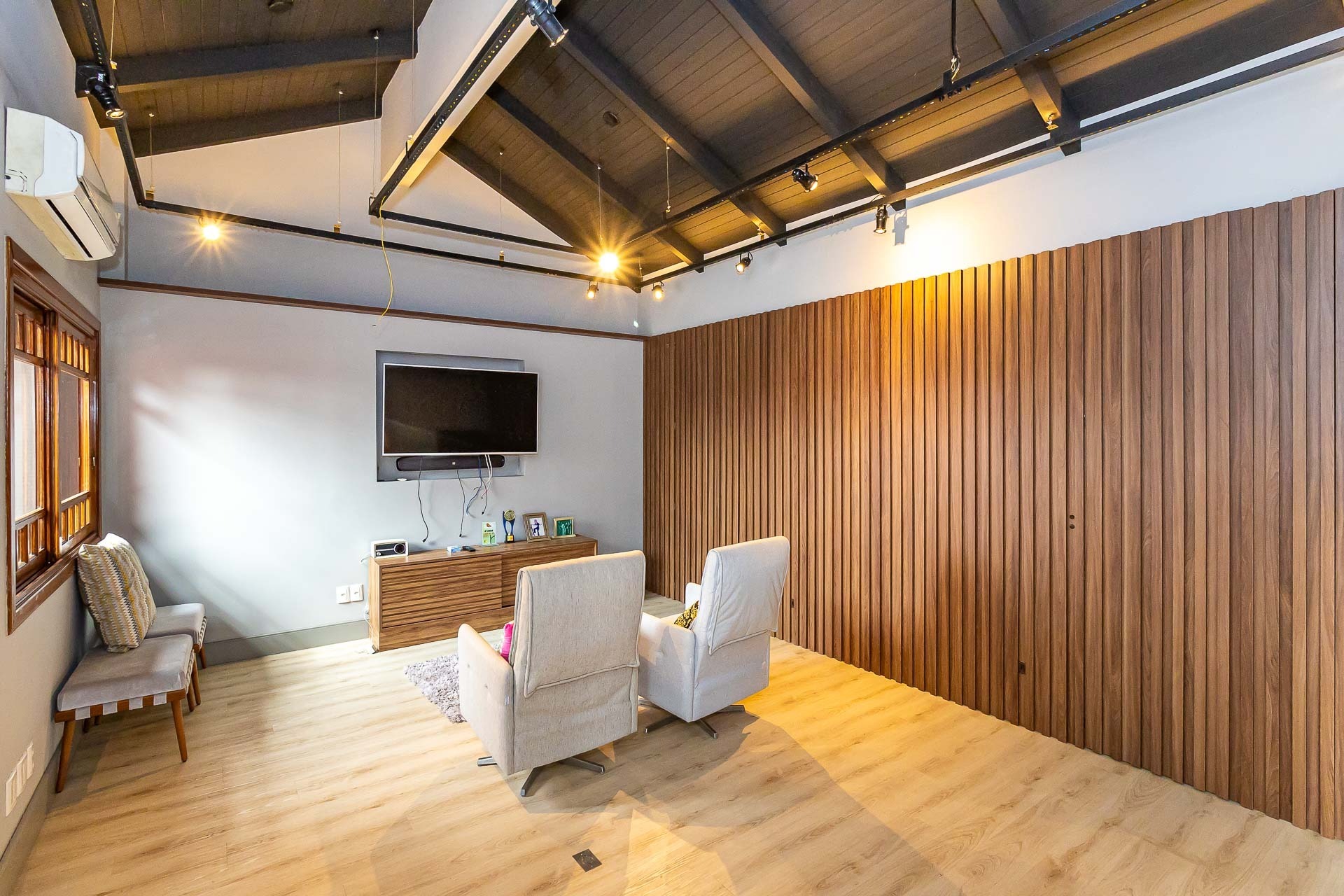 Sofisticado living para 03 ambientes , espaço lareira , espaço churrasqueira , lavabo , cozinha americana. 03 vagas individuais 2 depósitos.