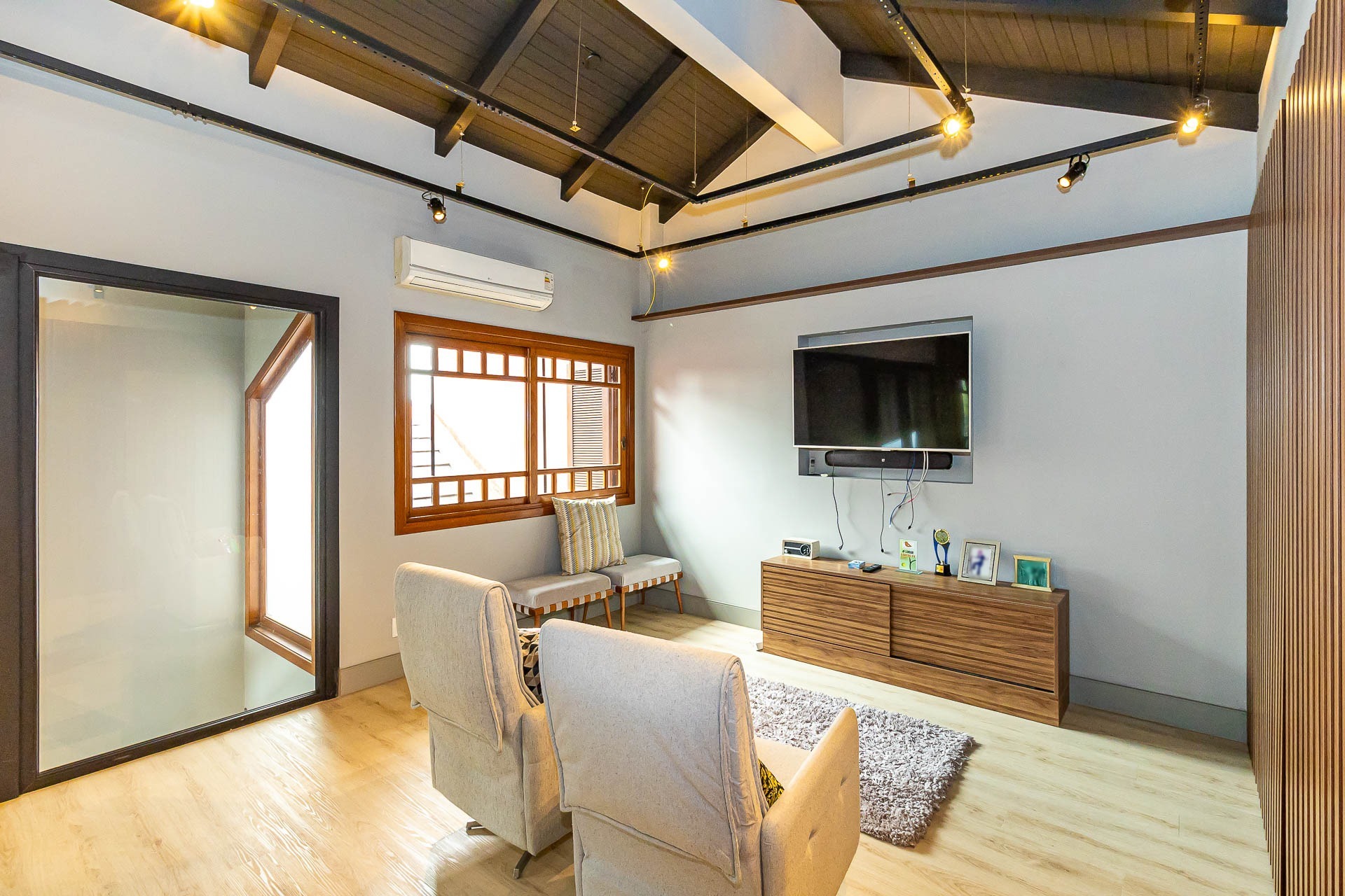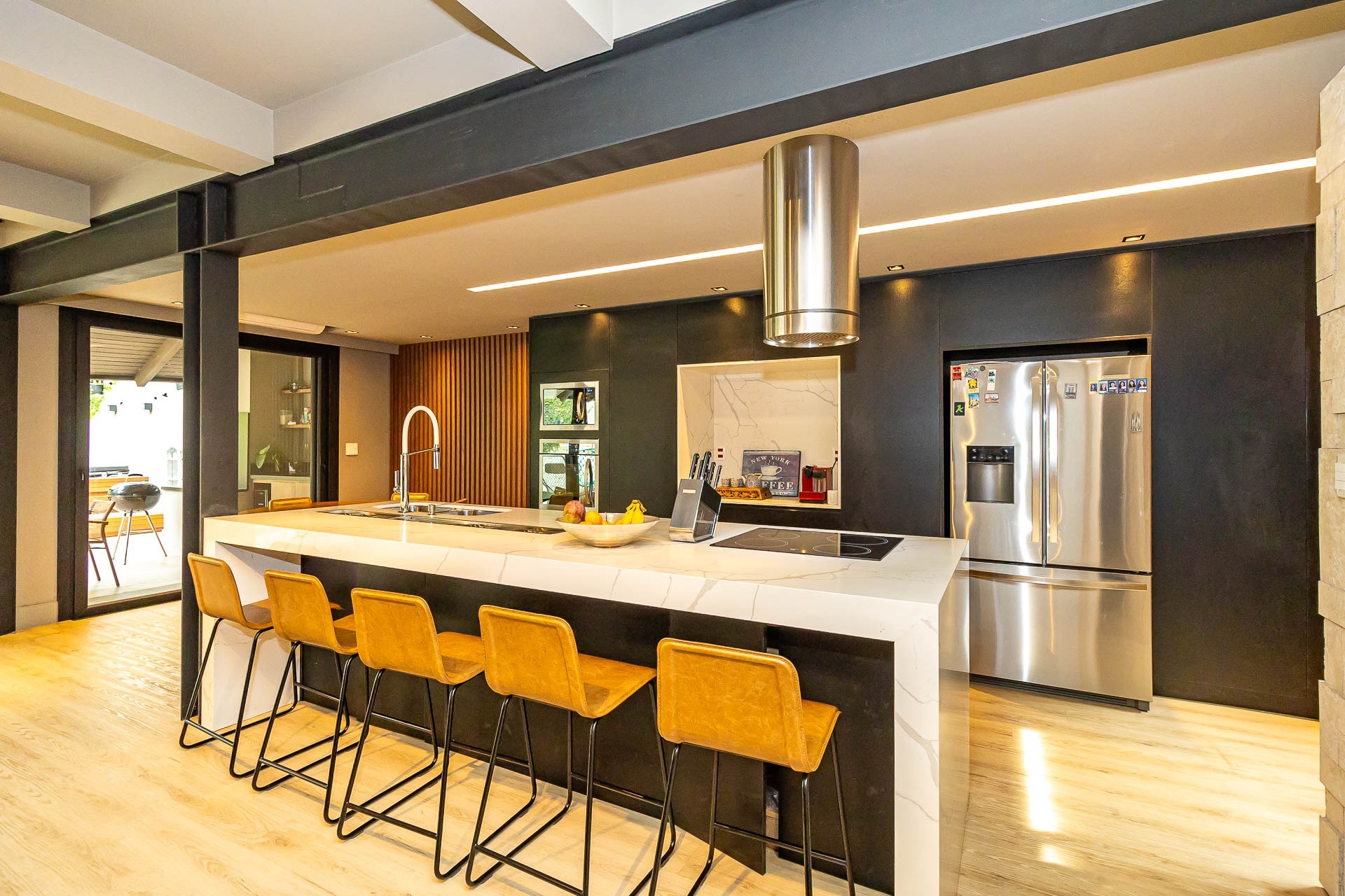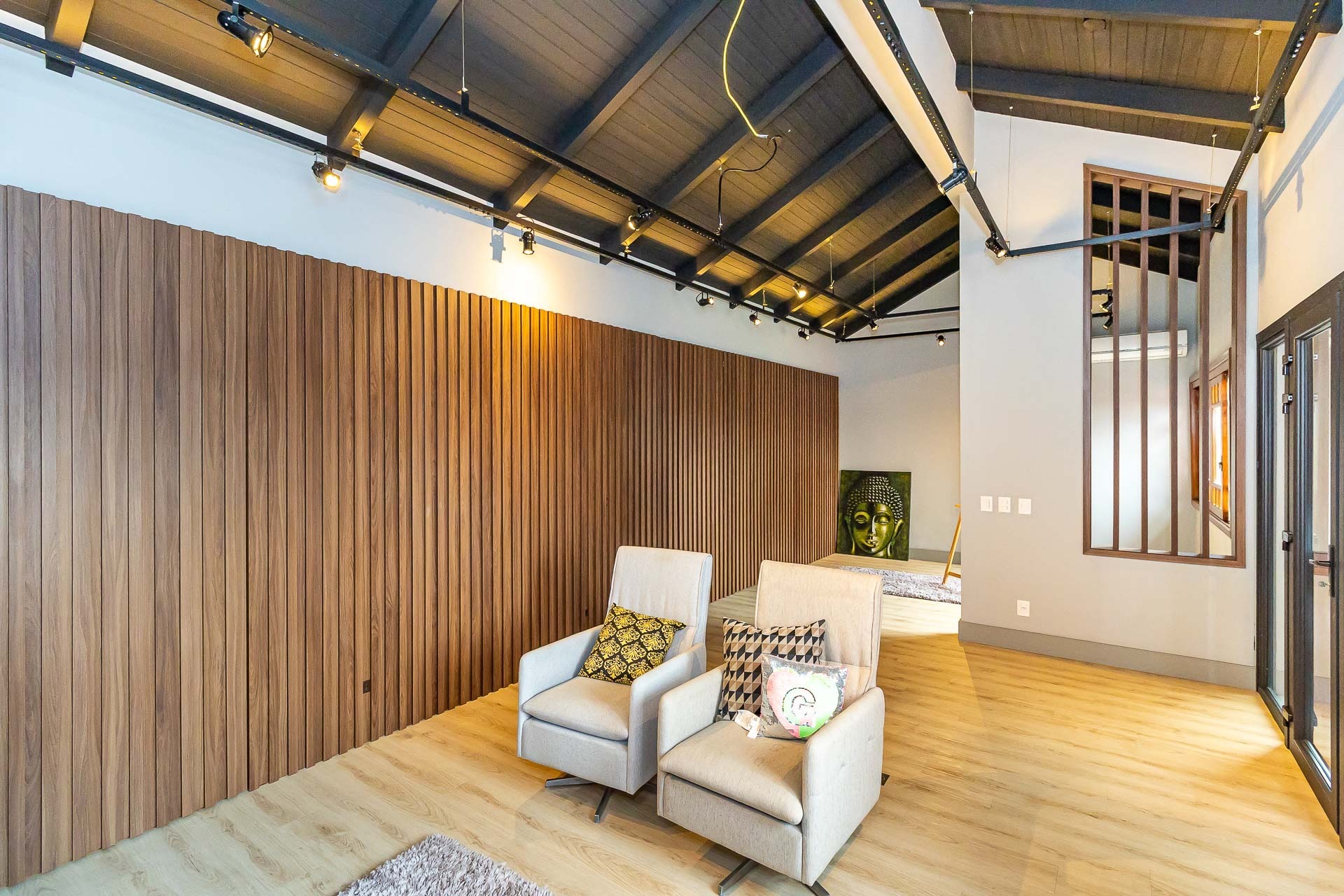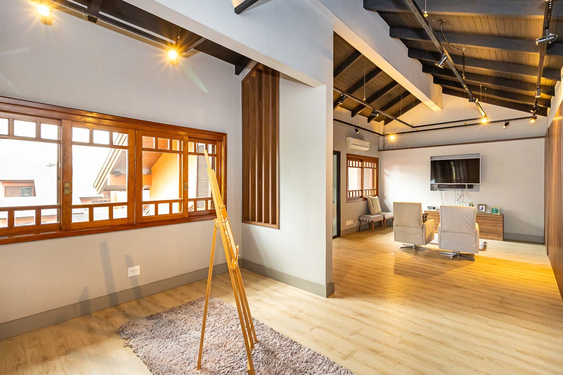 Sofisticado living para 03 ambientes , espaço lareira , espaço churrasqueira , lavabo , cozinha americana. 03 vagas individuais 2 depósitos.
