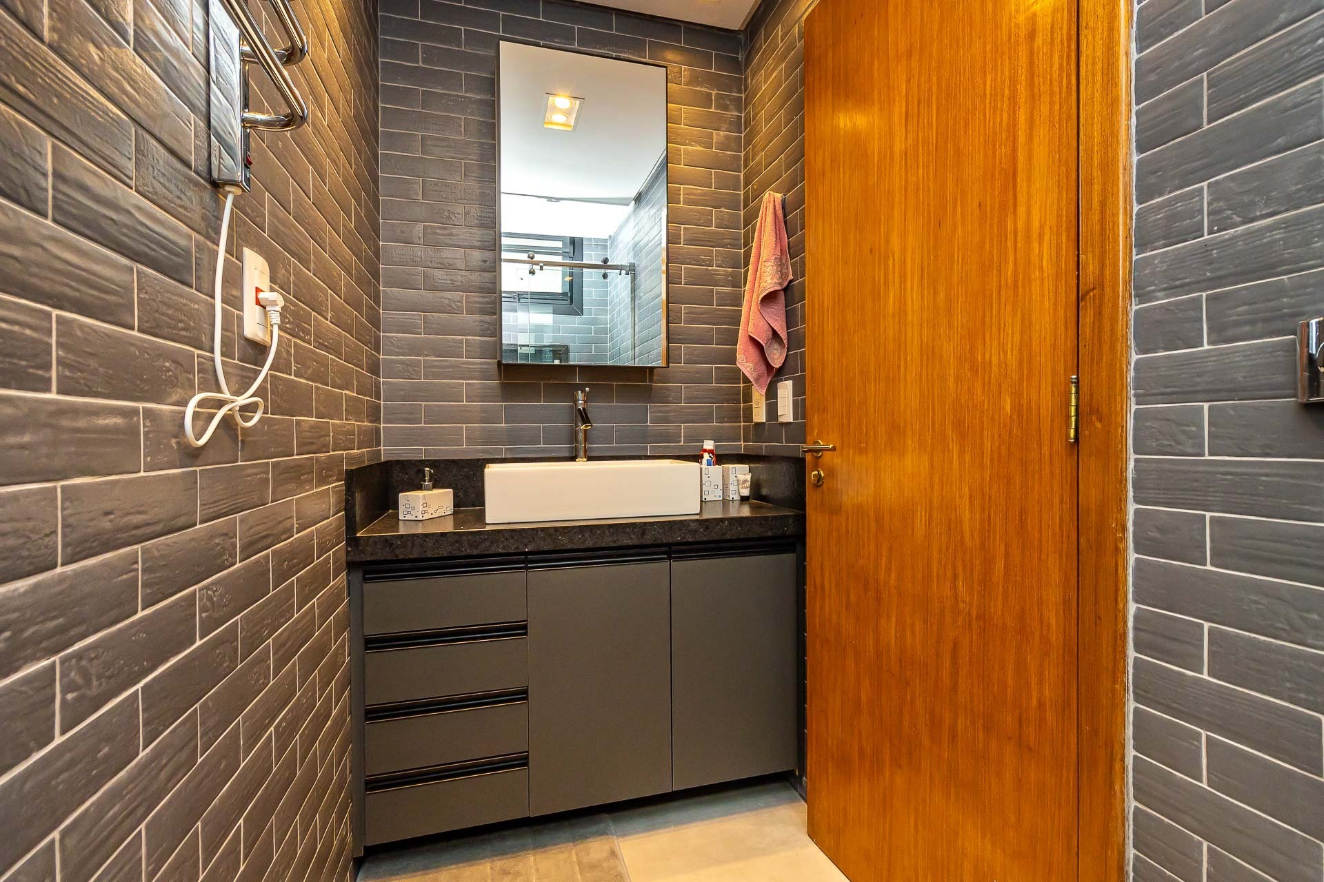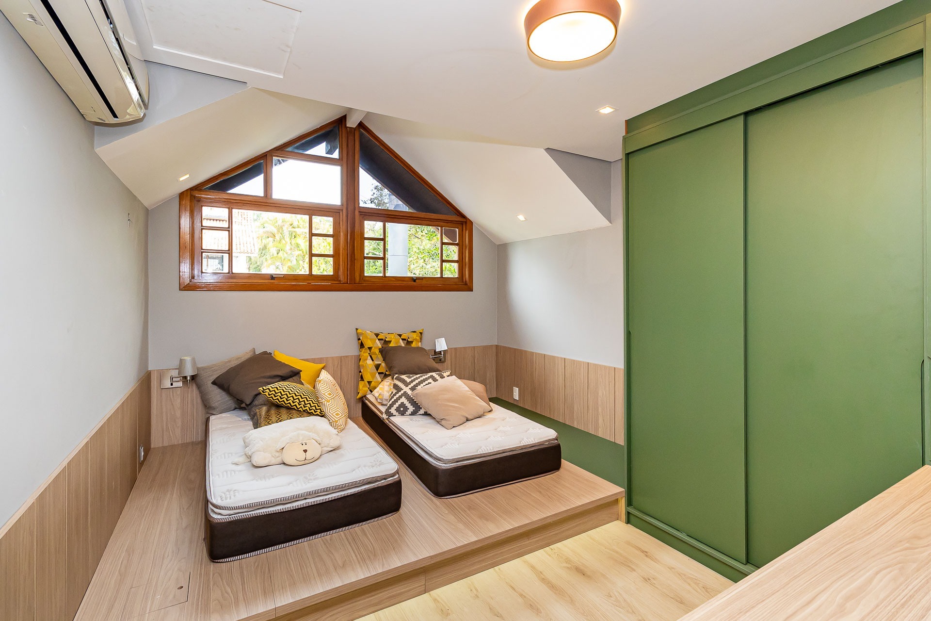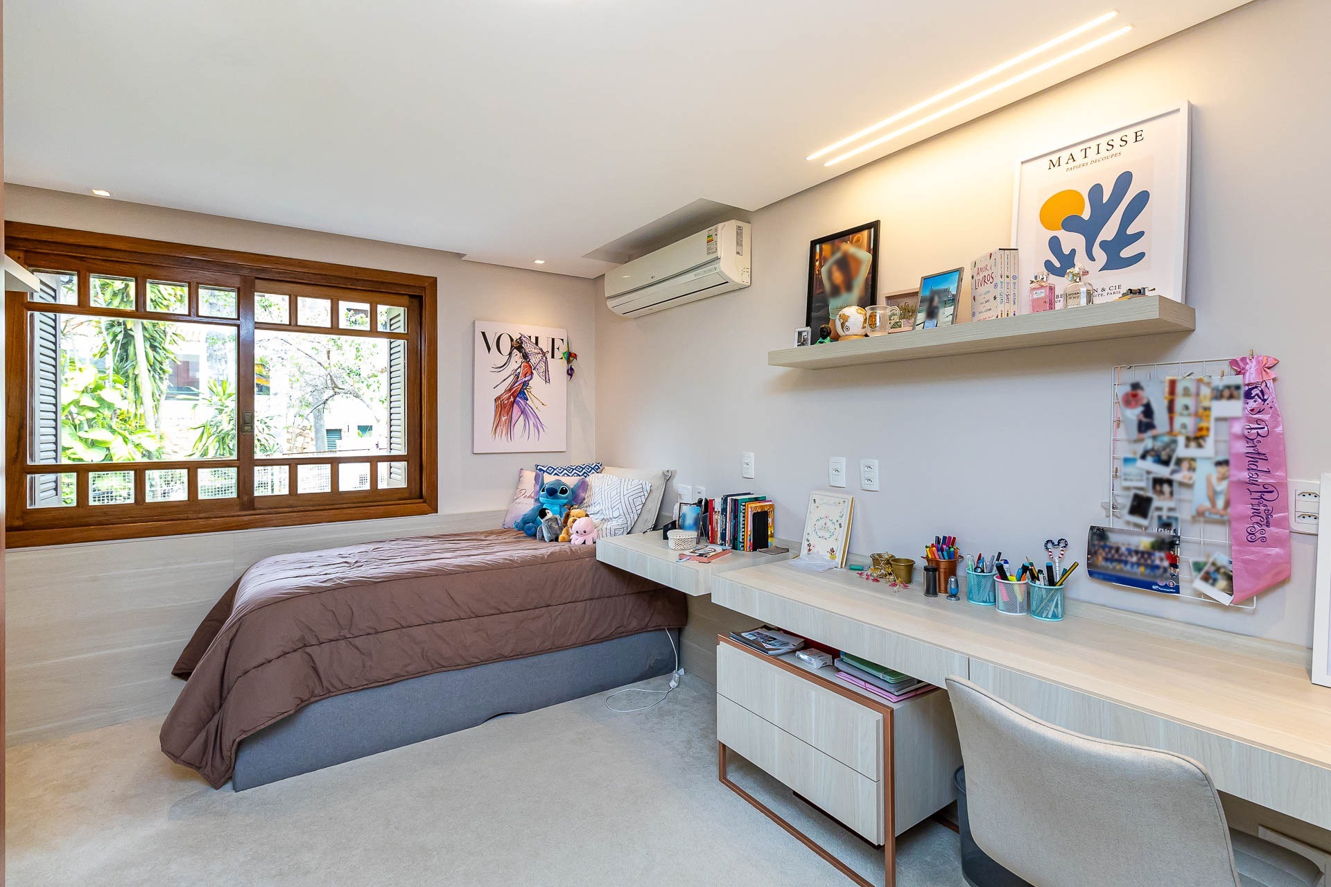 Seus traços limpos e suaves surgem em harmonia com uma rua calma, arborizada e bem localizada.