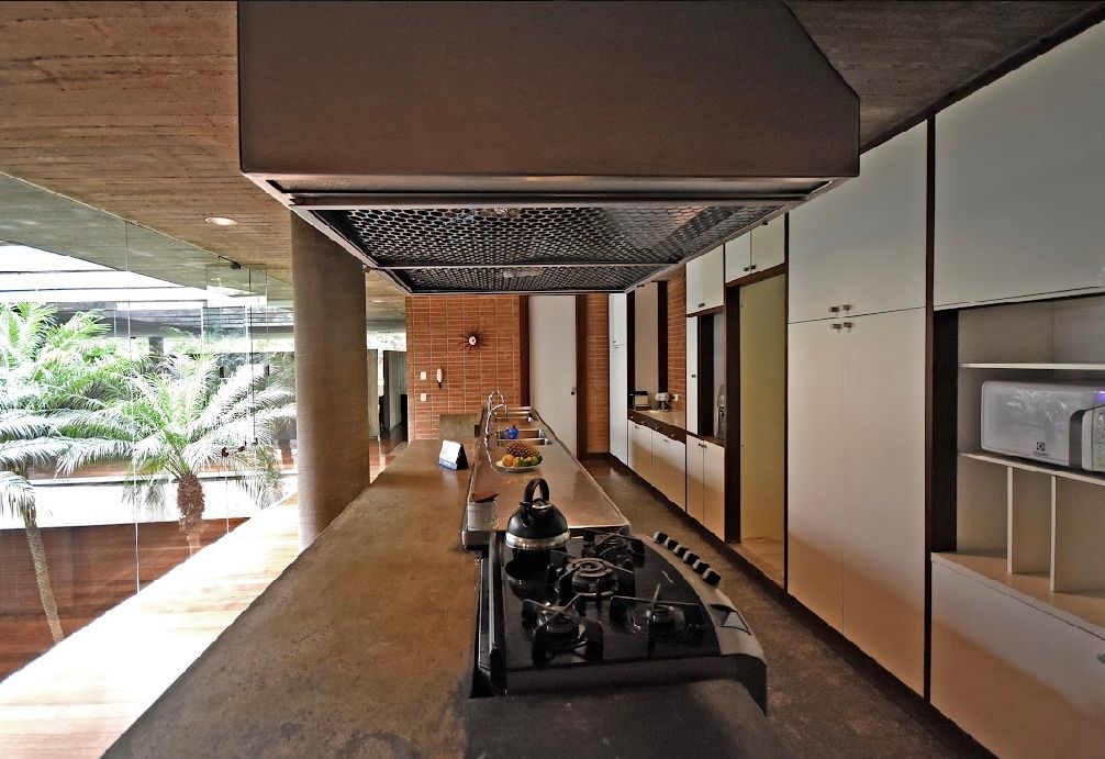 Um projeto realizado por Isay Weinfeld. O passeio se inicia num primeiro hall intimista, todo preto, que se abre para uma imensa caixa branca, com pé direito duplo e iluminação natural por domus, nos dando a certeza de estarmos em um lugar muito especial e surpreendente. Seguimos para generoso living e sala de jantar voltados para um amplo gramado com longa piscina de raia atravessando todo o esp...
