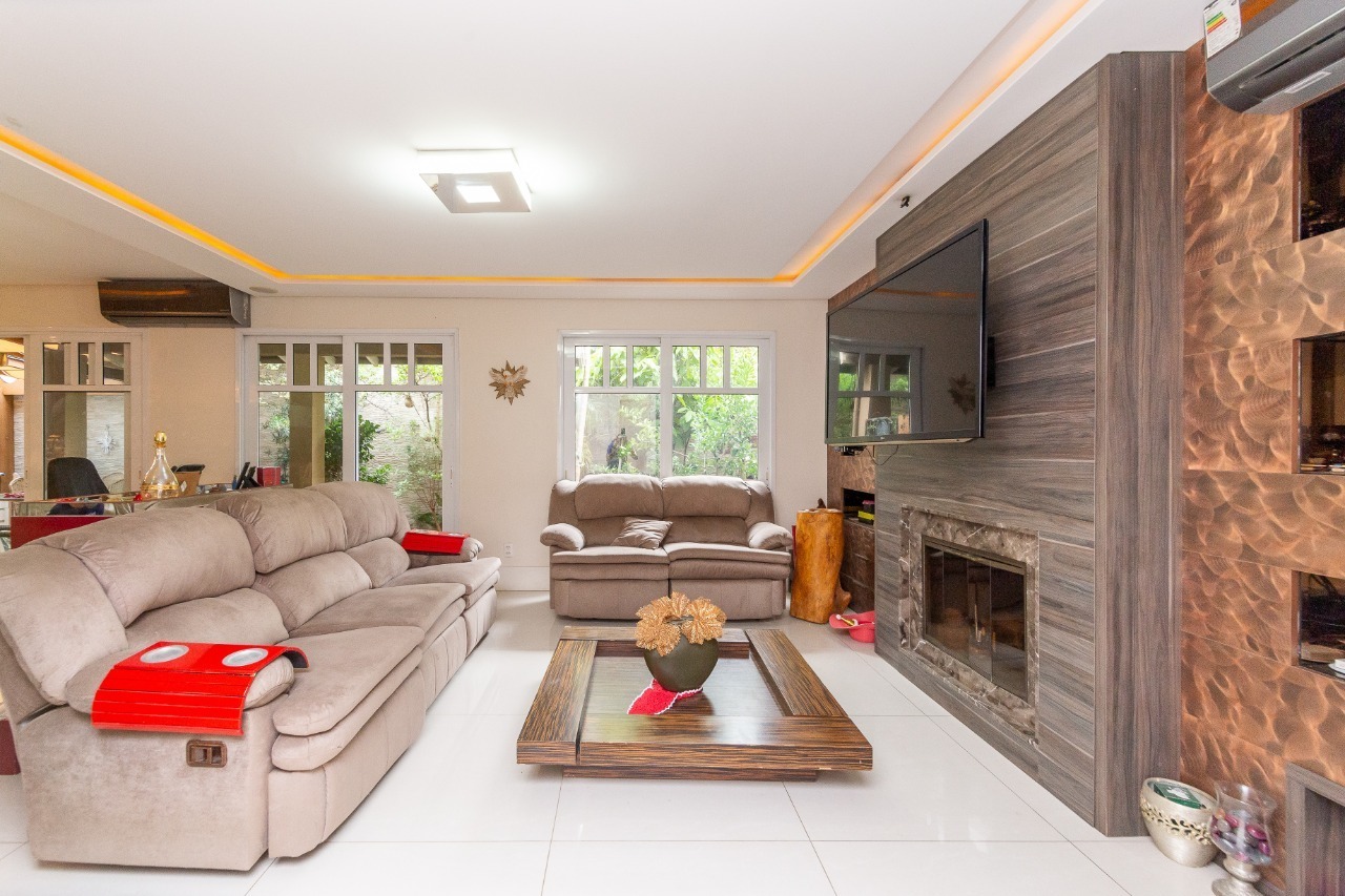 Casa com 3 suítes, 370 m² de área privativa. Possui no pavimento de entrada o living para 2 ambientes, lareira, lavabo, cozinha americana, 3 suítes e amplo pátio com piscina.