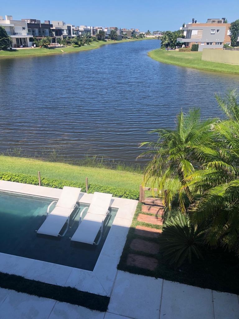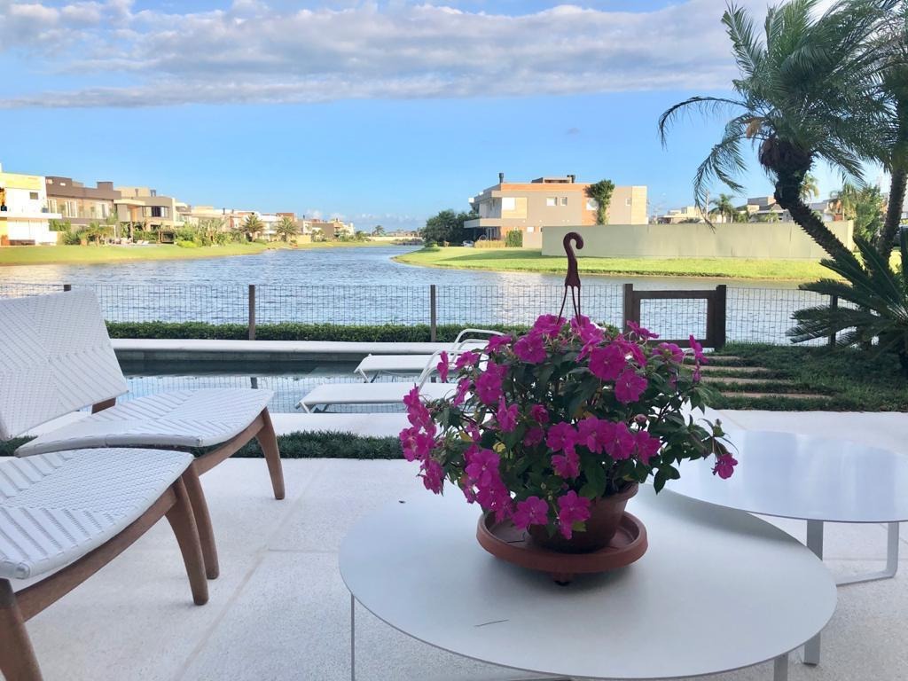 Magnífico sobrado beira lago à venda no Condomínio Enseada Lagos de Xangri-Lá. Magnífico sobrado beira lago, mobiliado e decorado, composto por 5 suítes sendo uma máster de 47 m² com banheira de hidro e 1 das suítes é no térreo, lavabo, living 2 ambientes, lareira, cozinha, área de serviço, terraço frente para o lago e vista do clube, dependência de empregada, área social com 138 m², fachada com...