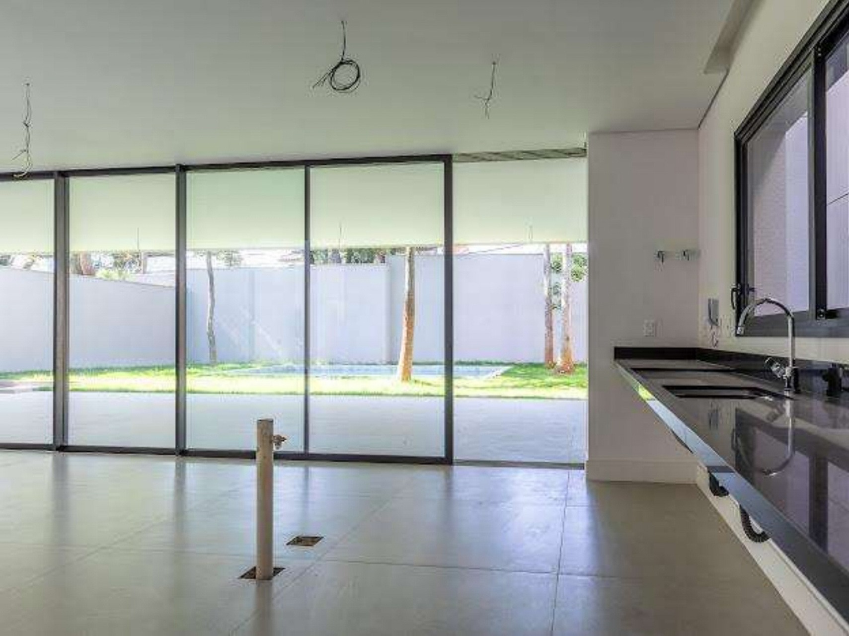 Um projeto realizado por Isay Weinfeld. O passeio se inicia num primeiro hall intimista, todo preto, que se abre para uma imensa caixa branca, com pé direito duplo e iluminação natural por domus, nos dando a certeza de estarmos em um lugar muito especial e surpreendente. Seguimos para generoso living e sala de jantar voltados para um amplo gramado com longa piscina de raia atravessando todo o esp...