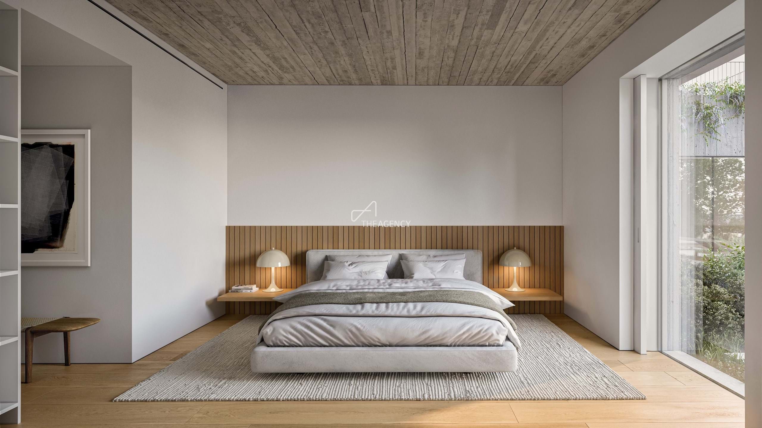 Zona privada composta por uma suíte master com 52 m², walk-in closet e três suítes adicionais, todas com acesso direto ao jardim e à piscina. Complementam este piso uma sala de TV, ginásio, sauna de infravermelhos e área de serviço com suíte para staff.