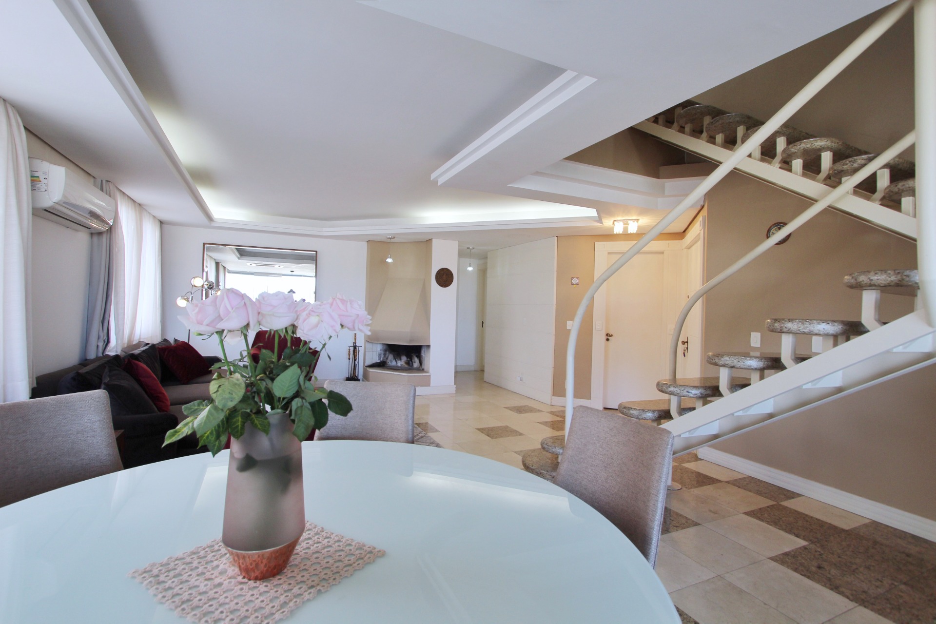 Amplo living com 3 ambientes com lareira, voltado para uma linda área de preservação permanente e panorâmica, churrasqueira gourmet integrada ao living, lavabo, copa cozinha, area de serviço e banheiro auxiliar.