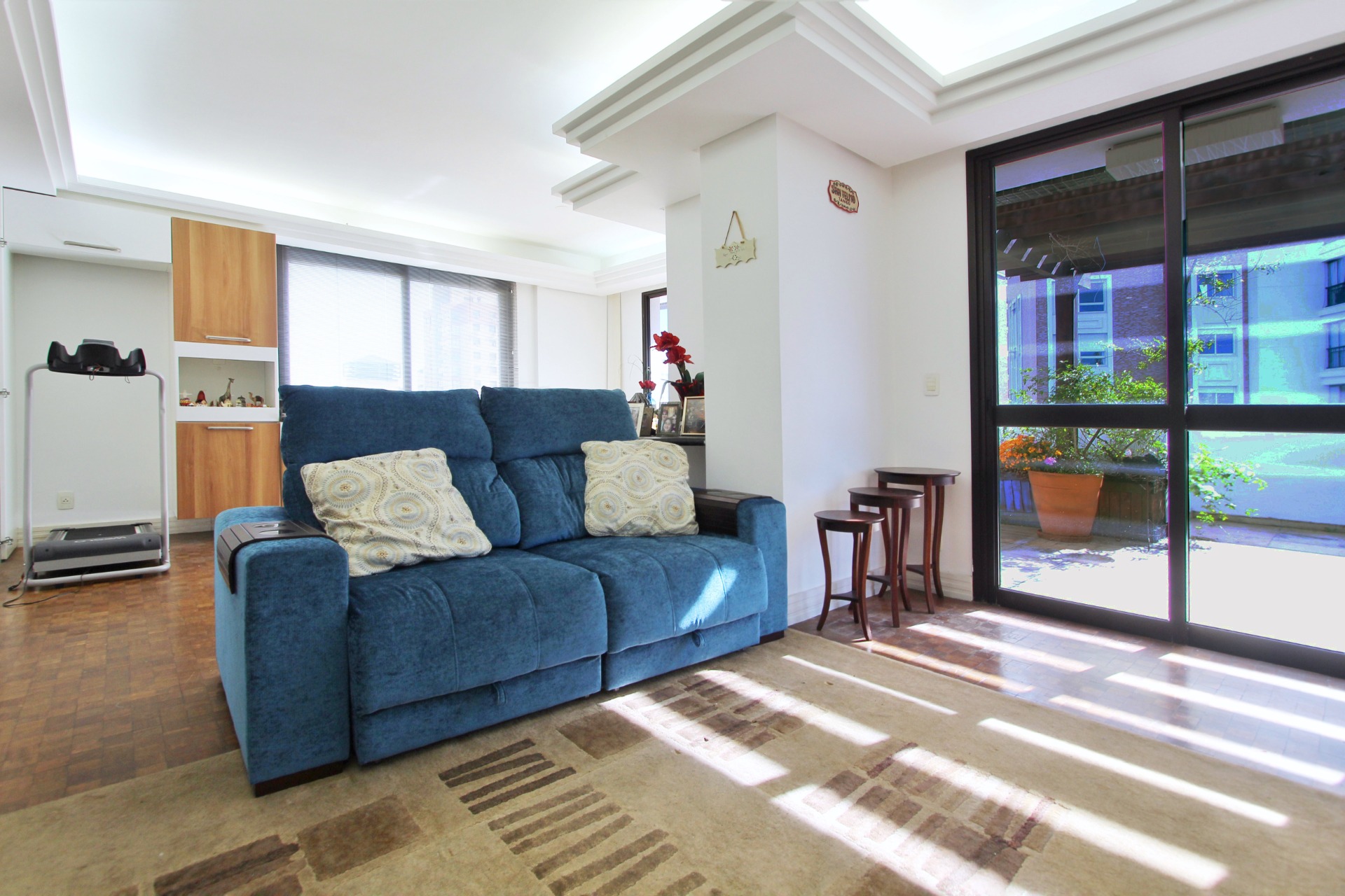 Apartamento semimobiliado gardem 3 dormitórios sendo 1 suíte, com 143m² de área privativa 1 vaga dupla. Living estendido com pátio integrado e espaço gourmet com churrasqueira, cozinha área se serviço com pátio. Ambiente com ótima iluminação e ventilação natural. Na área intima são 3 dormitórios sendo 1 suíte com gabinete, 2 dormitórios sendo 1 usado como home office e banheiro auxiliar. Prédio en...