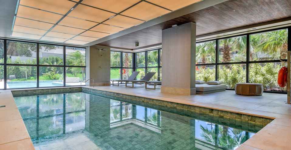 Apartamento com 3 quartos, Hidromassagem e Lareira com uma linda piscina azul da cor do mar